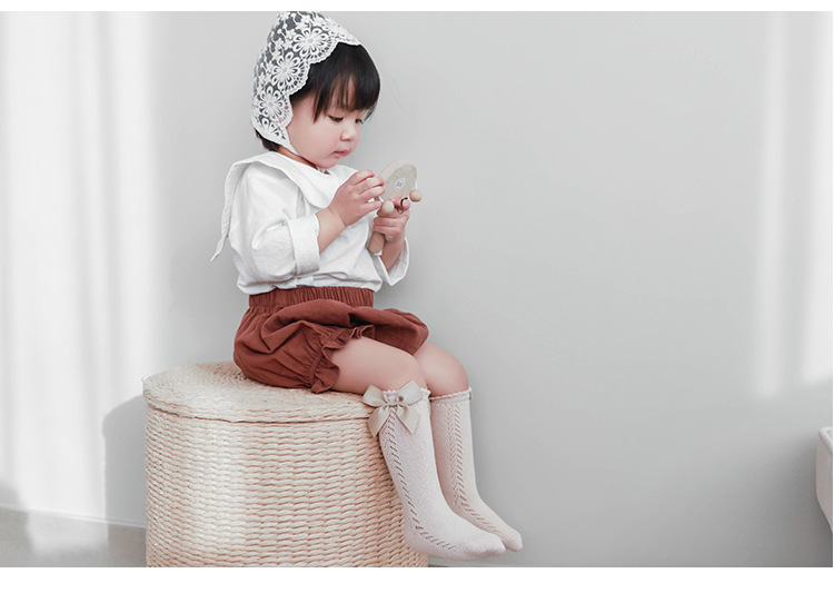 【采用西班牙镂空工艺 时尚百搭】A类春夏新款西班牙风移圈镂空网眼蝴蝶结袜子精梳棉女儿童公主袜