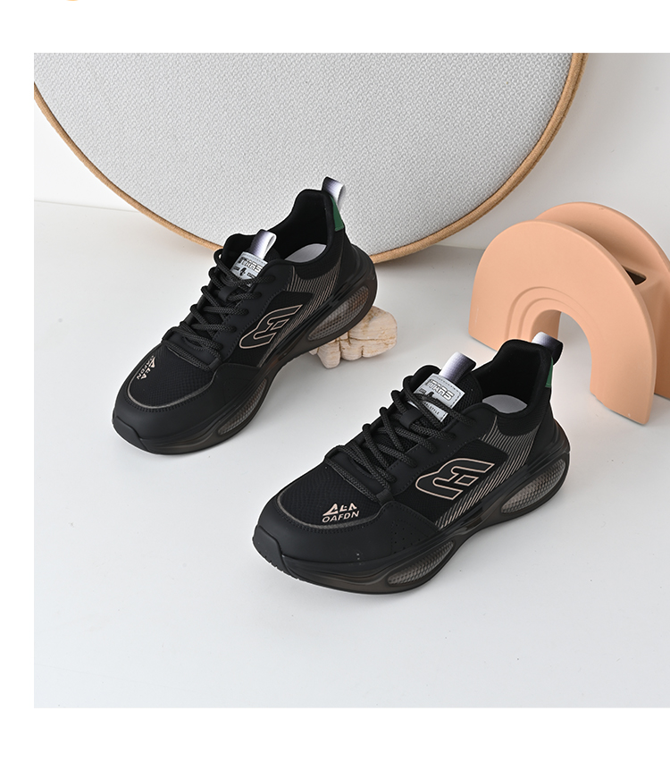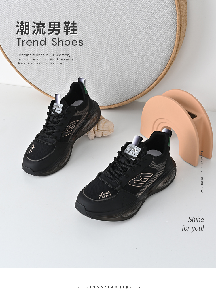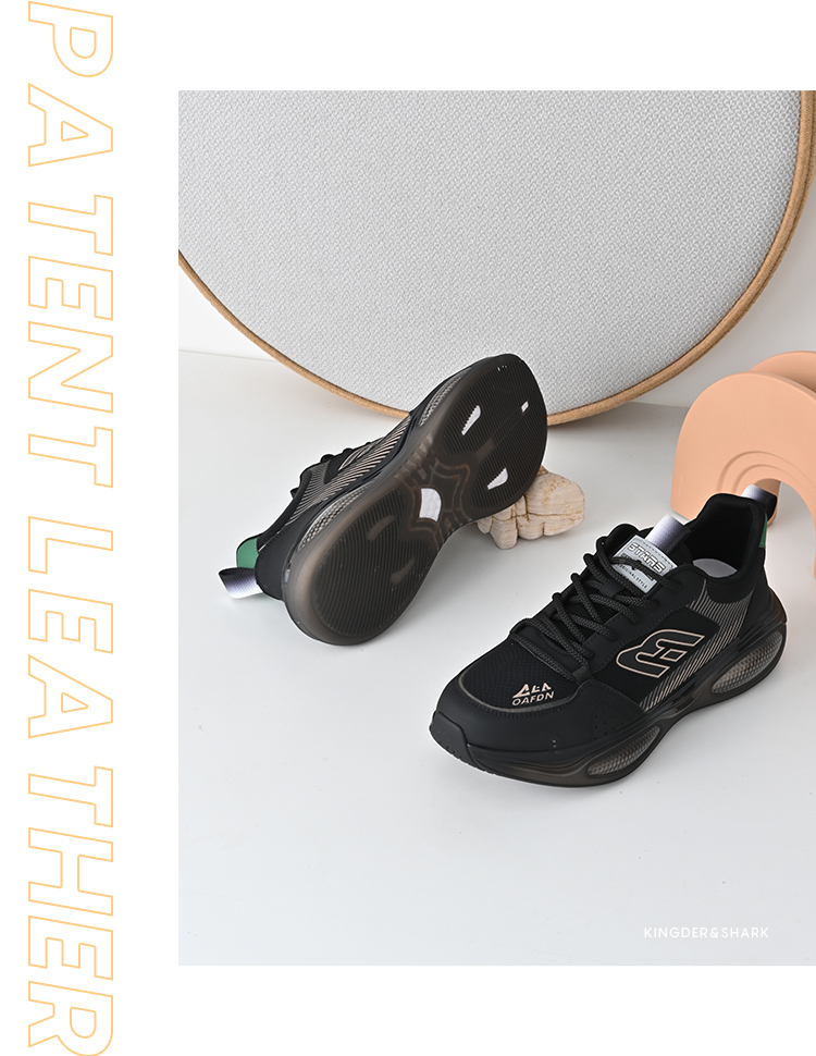 经典鲨2025年春季新款男士黑色百搭系带休闲跑步鞋KW222-513031