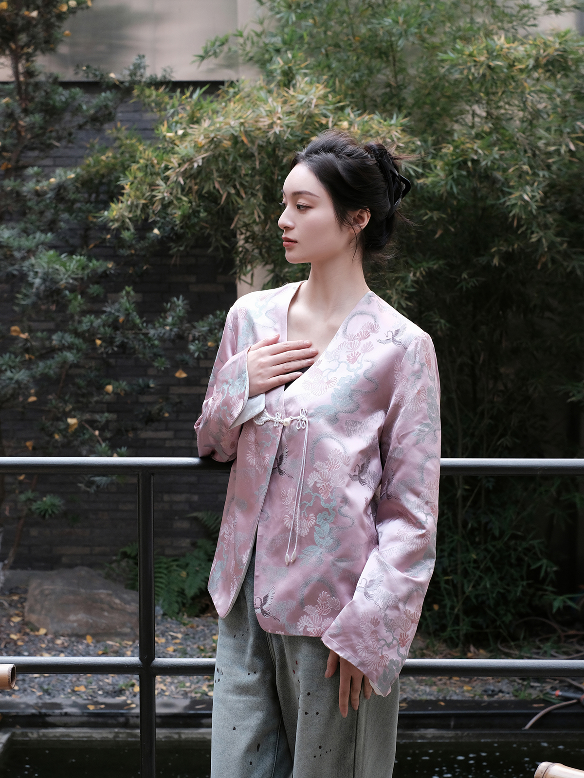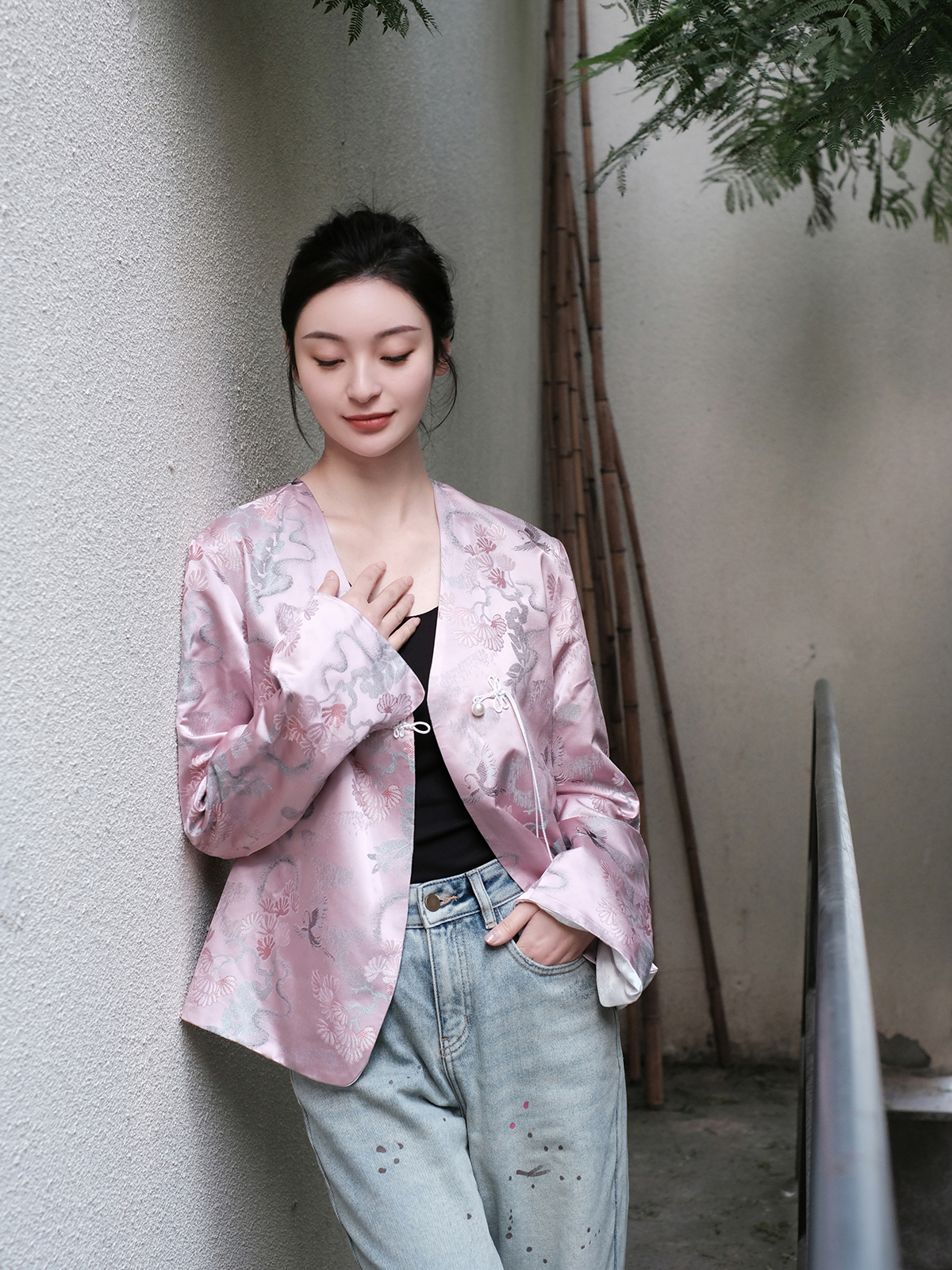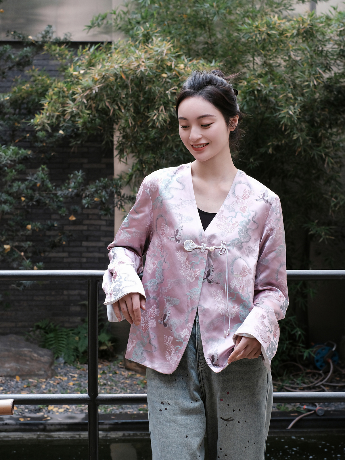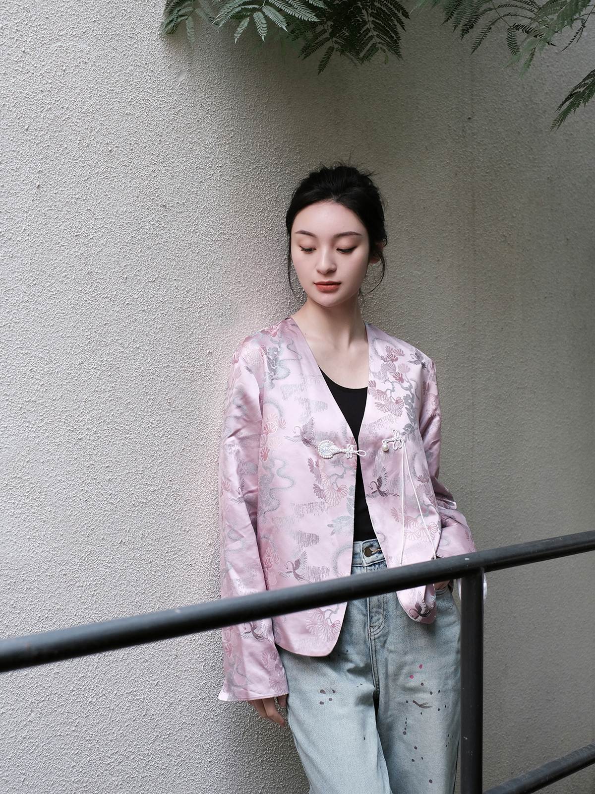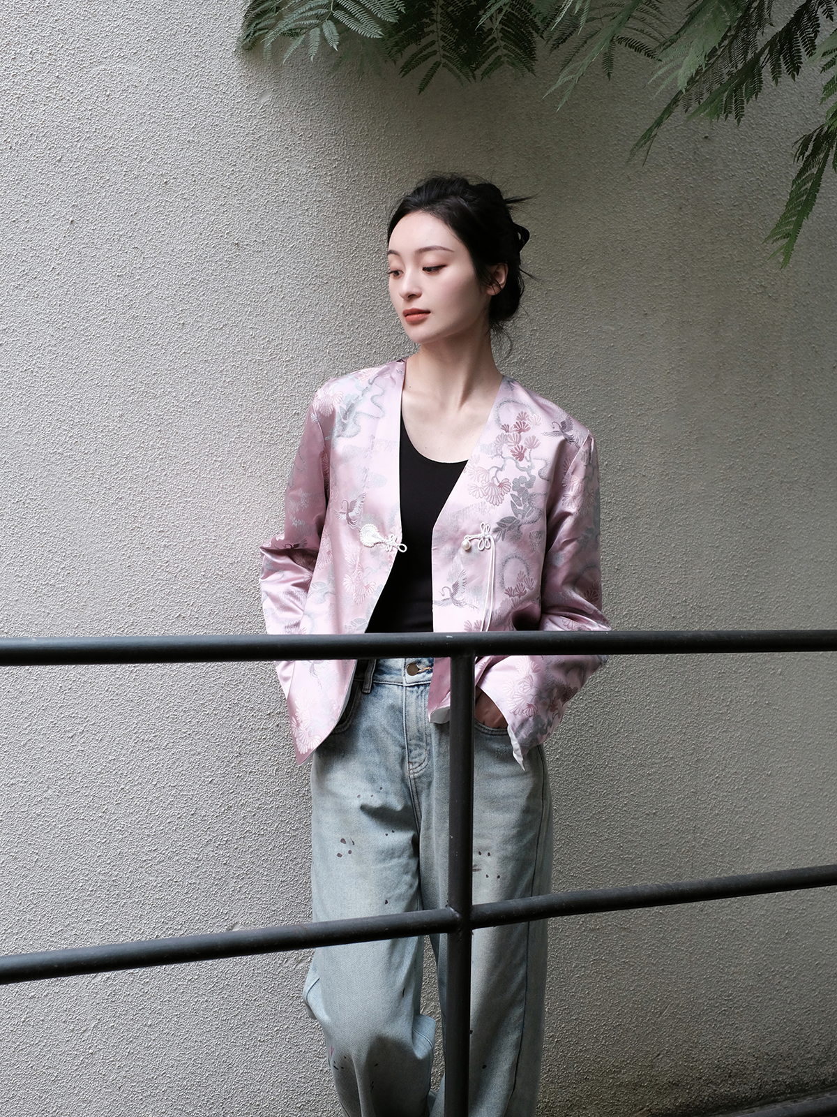 盛唐牡丹 | 宋锦闲云野鹤一粒扣外套