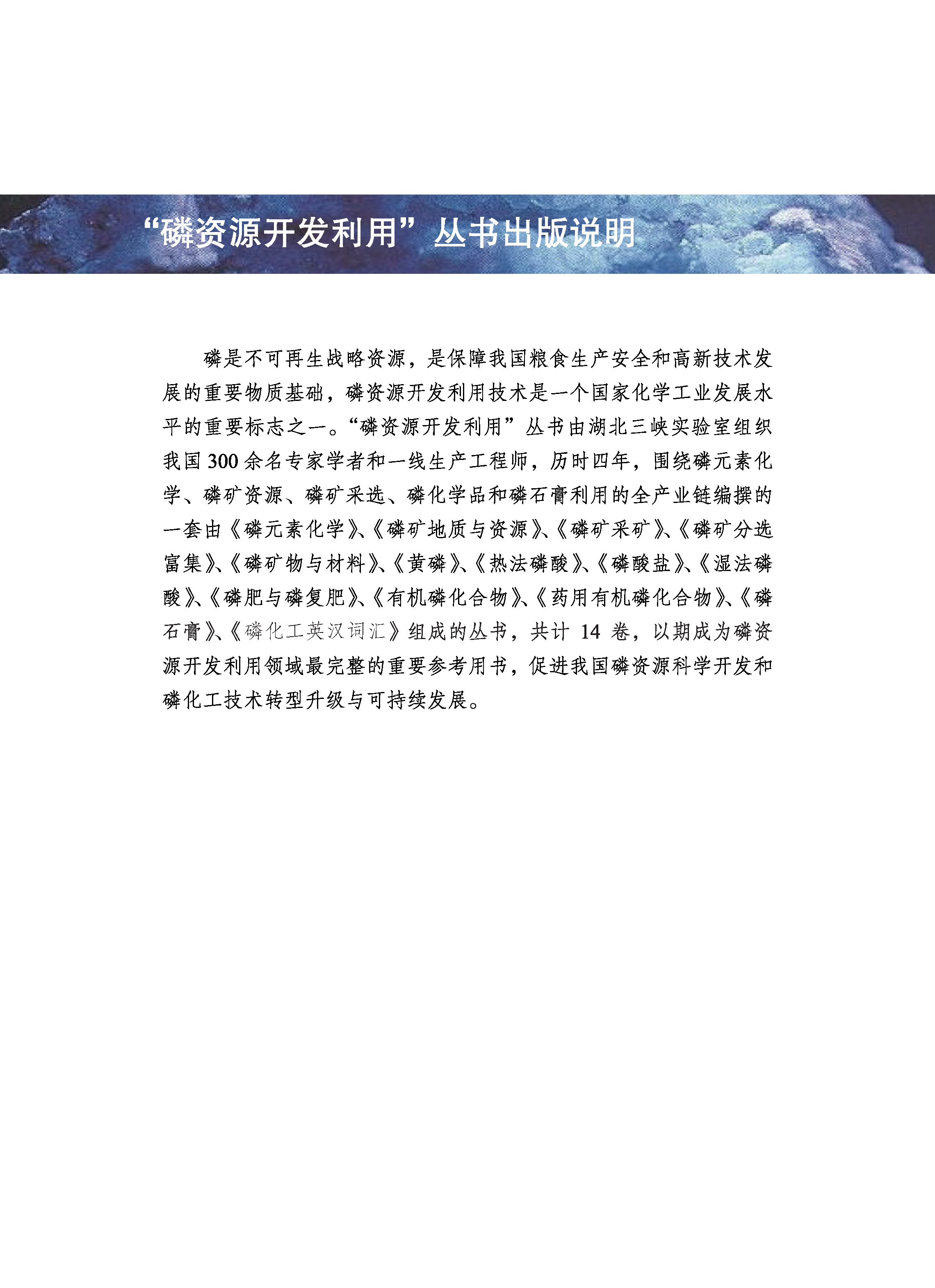 本书内容共分11章,介绍了黄磷的来源、性质、用途以及在国民经济中的地位,回顾了我国黄磷工业的发展历史,回顾了我国先辈们的开创成果;讲述了制磷技术的化学原理,为制备工艺提供理论基础;系统地介绍了黄磷生产的工艺流程,对主要工艺条件和控制参数做了具体说明;介绍制磷工业的关键设备,重点是电炉和电极;仔细探讨了黄磷精制过程;对黄磷生产过程的能耗以及节能措施进行了量化分析;对黄磷生产过程中的三废环境问题进行了综述,并总结了系统的解决方案;专门详述了高纯黄磷的制备工艺;较全面地论述了黄磷生产的生态环境、安全和健康问题。为了与丛书其他读物衔接,本书还简短介绍了黄磷的下游产业链,并对黄磷生产技术的进步做了展望与评述。