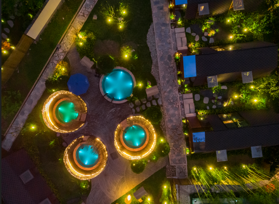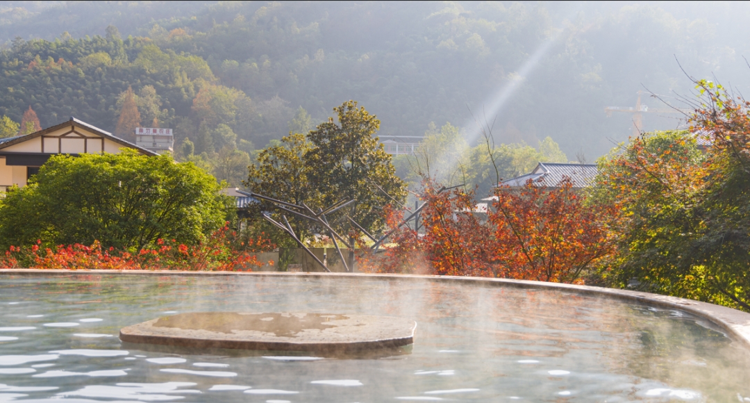 儿童戏水池3个,鸟巢温泉4个,共有室内外汤池34个