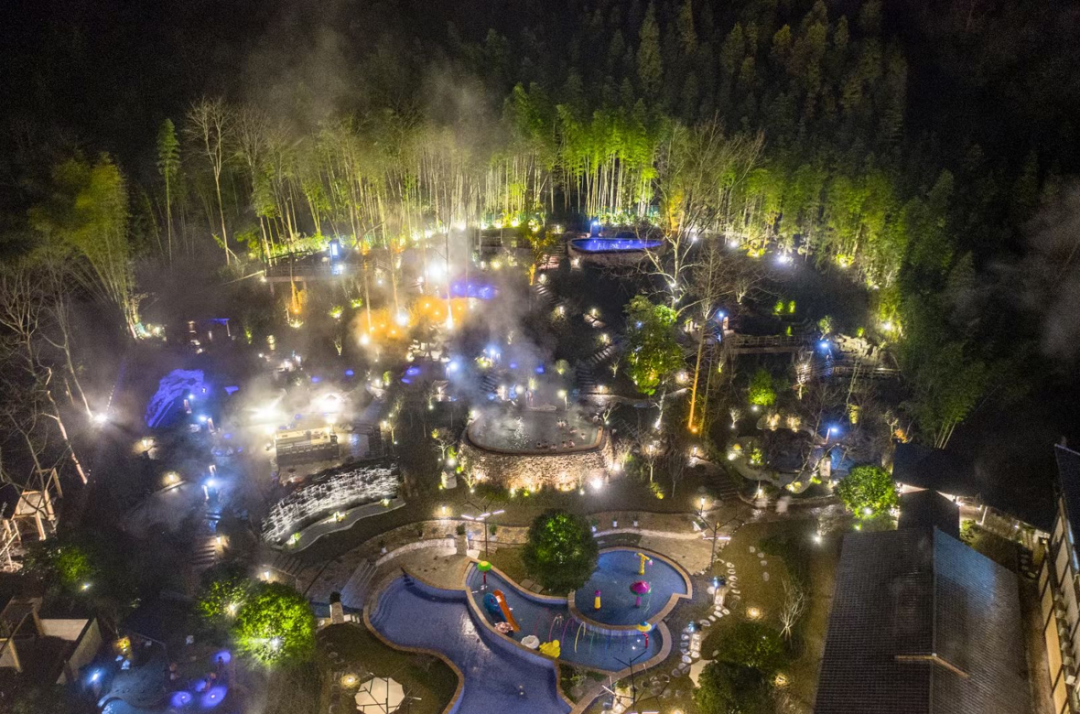 室外温泉池19个,洞穴温泉7个,室内泳池1个