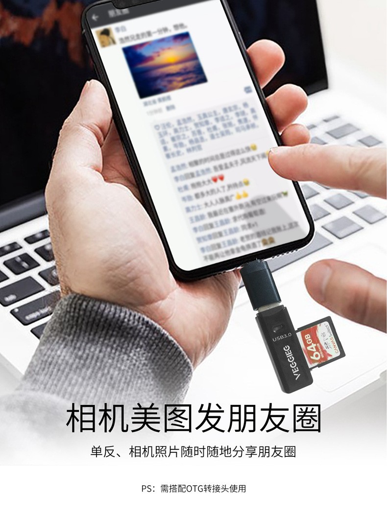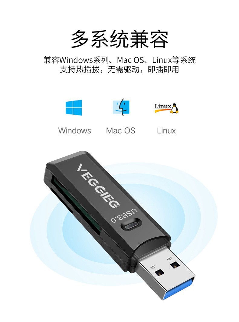 严选【二合一USB2.0白色读卡器】记录仪摄像头2.0多功能高速TF手机卡SD卡1个