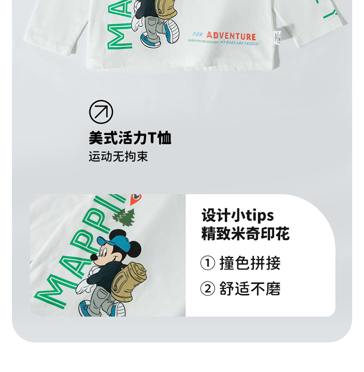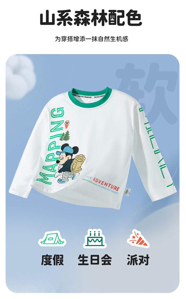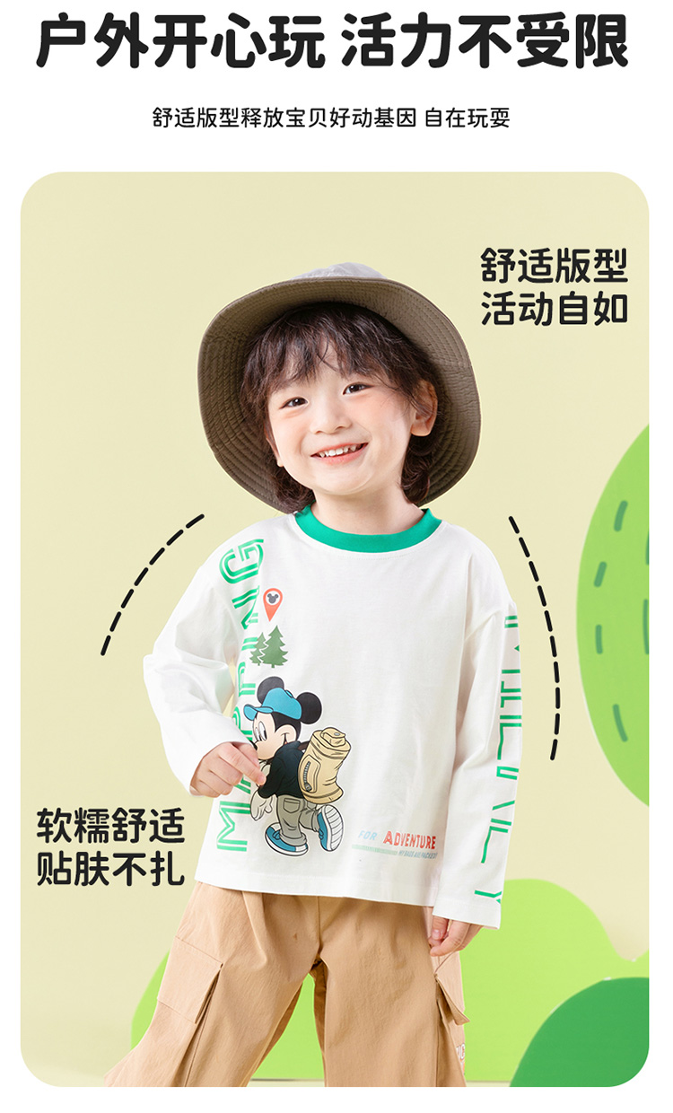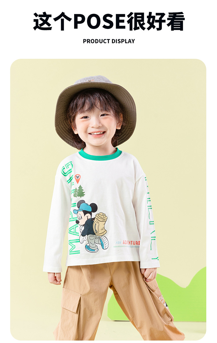迪士尼春秋男童长袖T恤卡通打底上衣居家空调服长袖T恤ZD1ES019