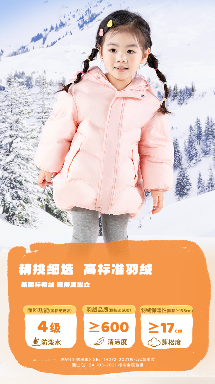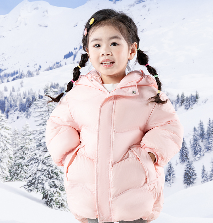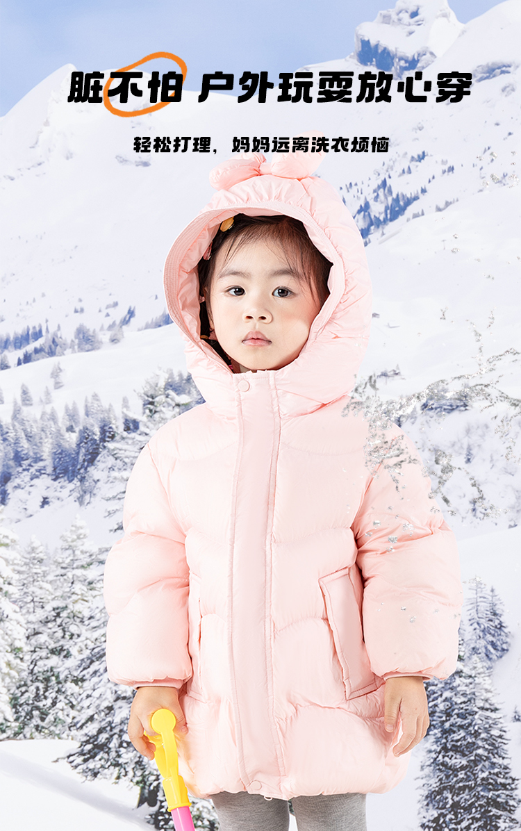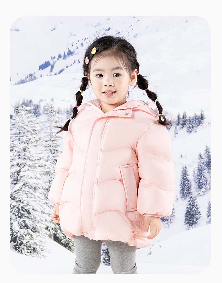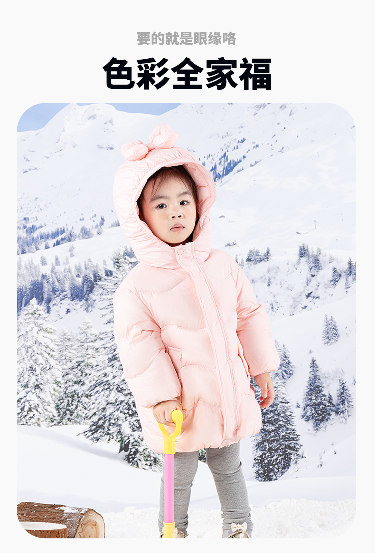 贝贝怡冬季女童简约可爱连帽羽绒服保暖防风外套ZB4DS004