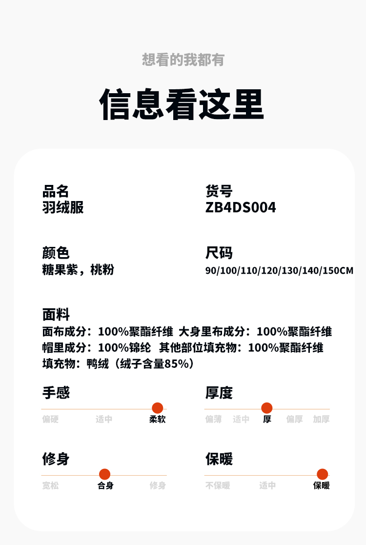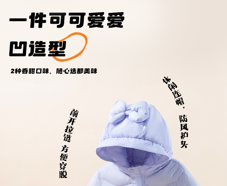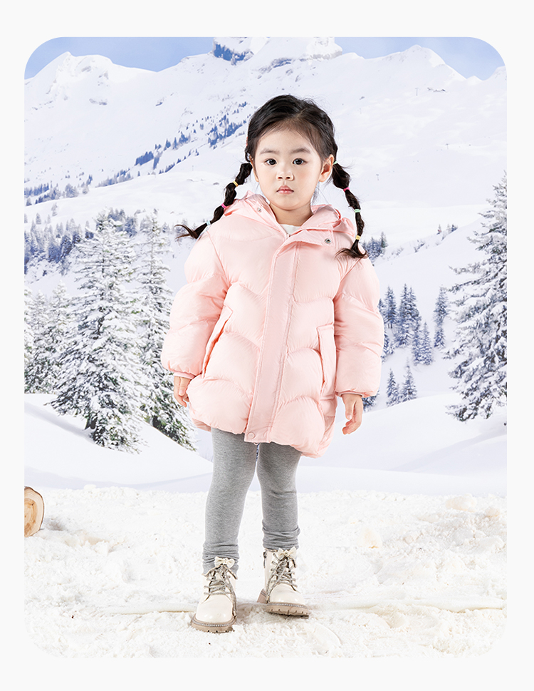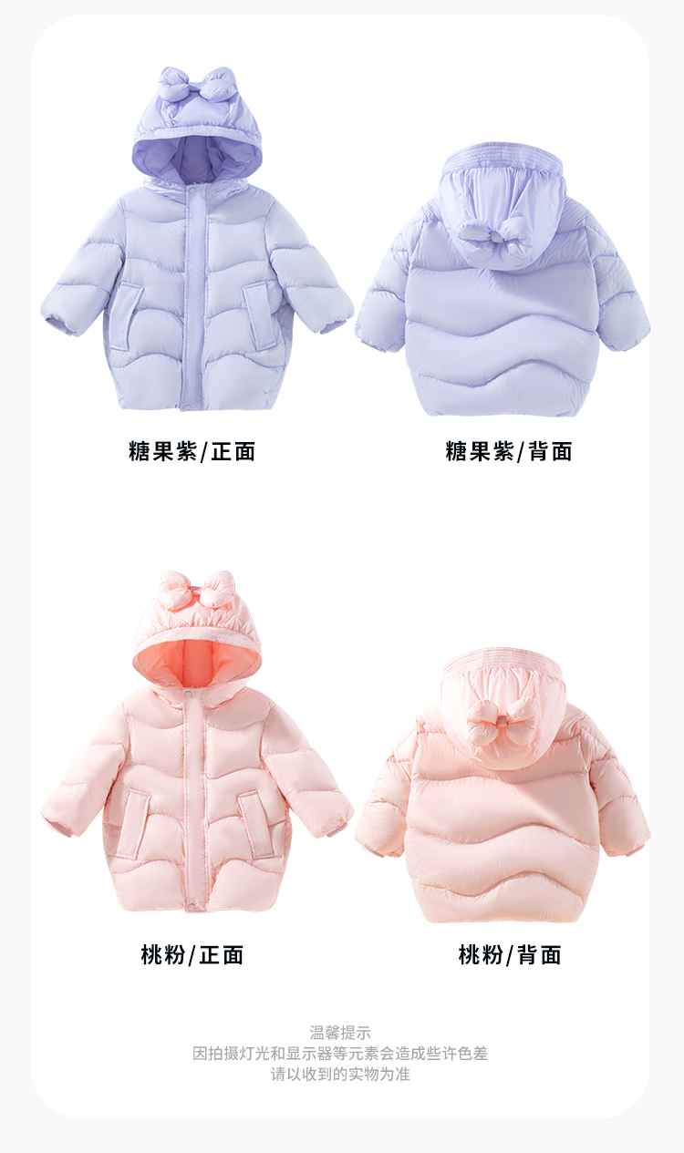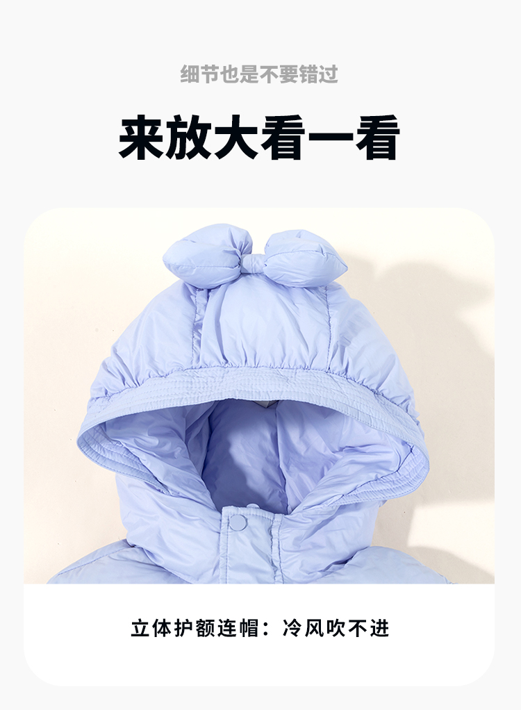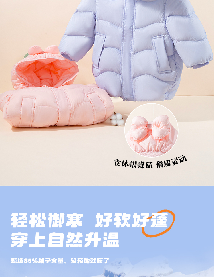 贝贝怡冬季女童简约可爱连帽羽绒服保暖防风外套ZB4DS004