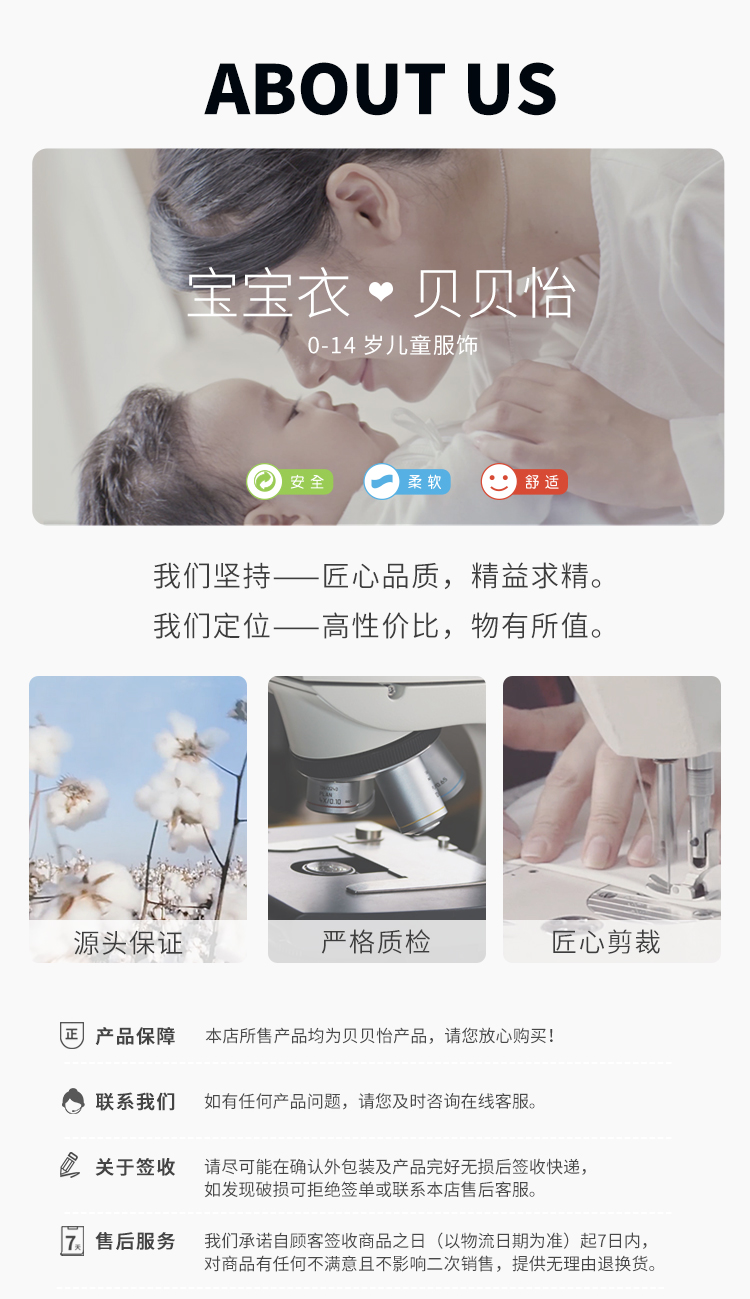 - 贝贝怡专注0-6岁婴幼儿服饰,坚持安全、柔软、舒适的产品理念,为千万中国家庭提供超高品质、安全可靠的婴幼儿服饰产品,妈妈放心,宝宝开心!