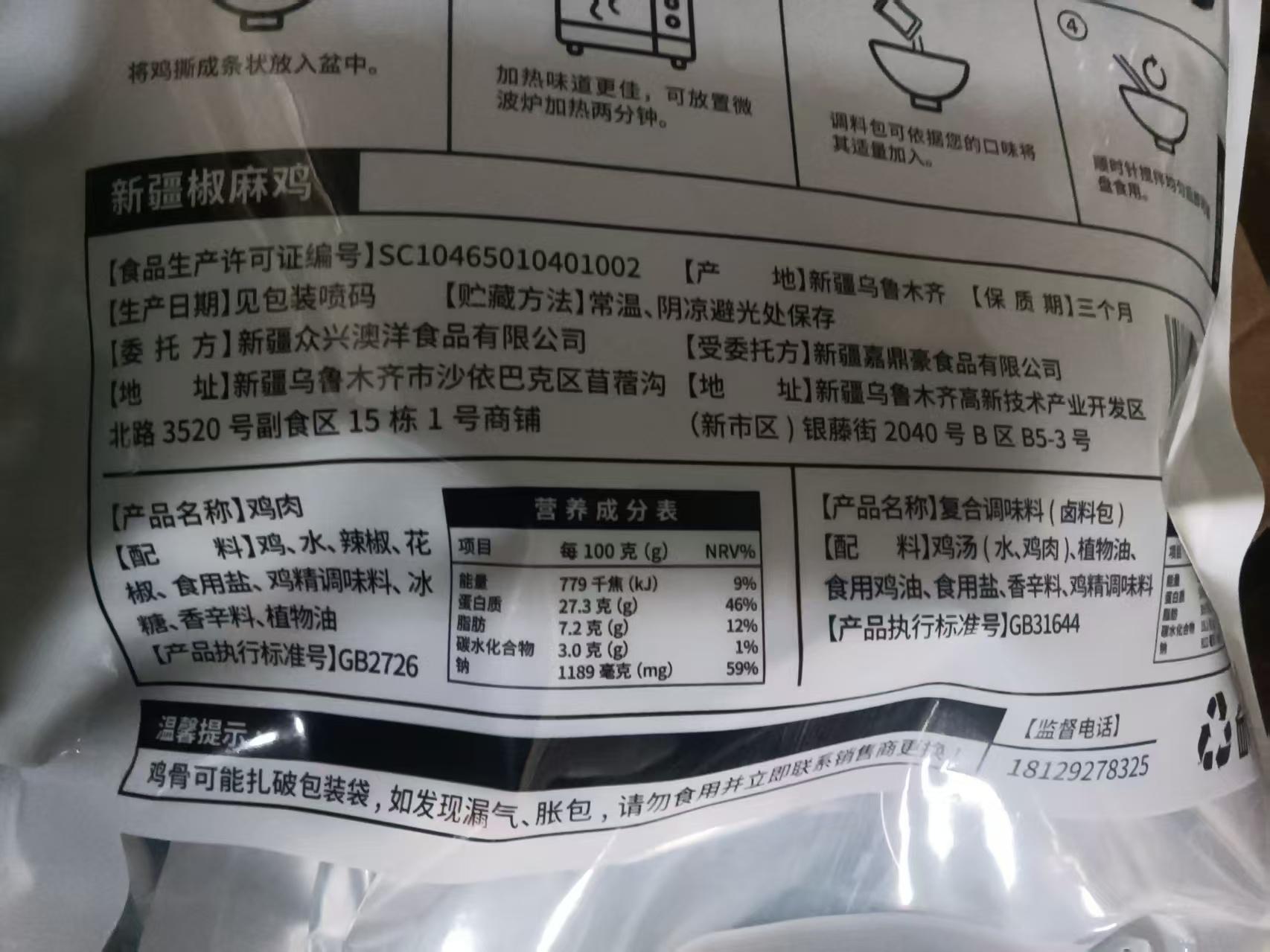 【产品名称】新疆椒麻鸡、新疆椒麻鸡(麻椒鸡口味)