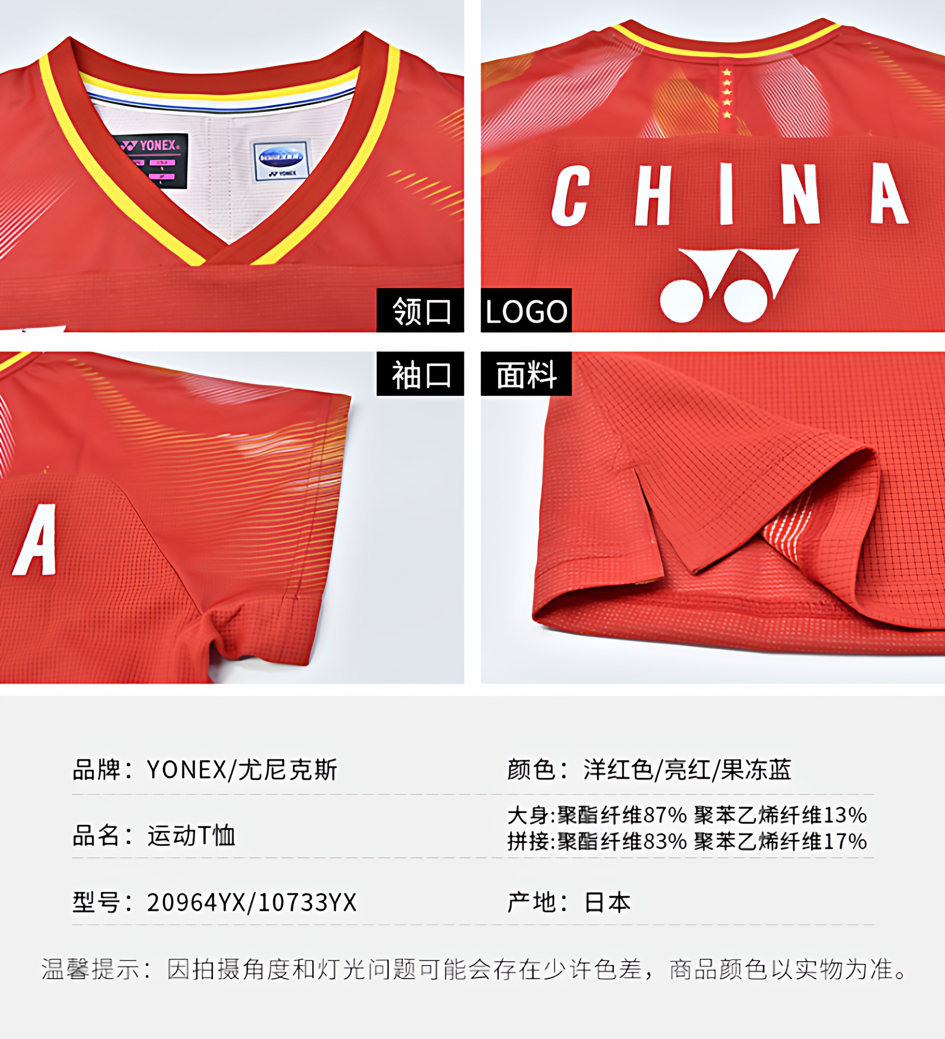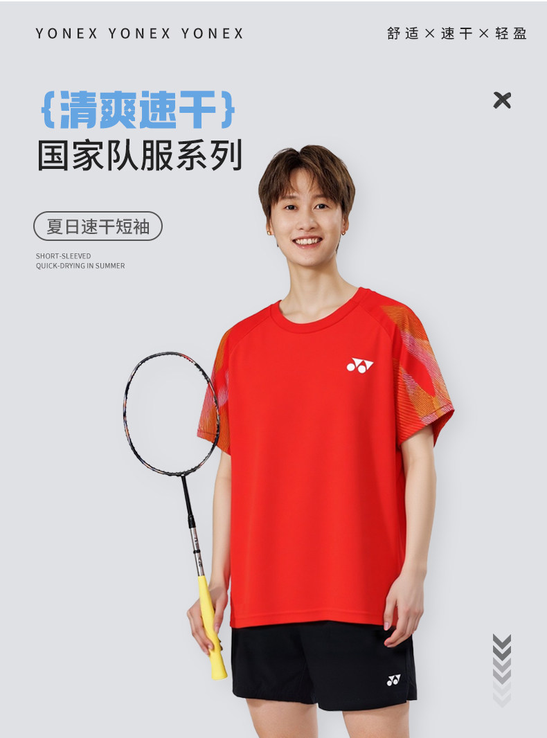 尤尼克斯 男款/女款 短袖T恤 国家队大赛款 10733YX/10734YX/20964YX