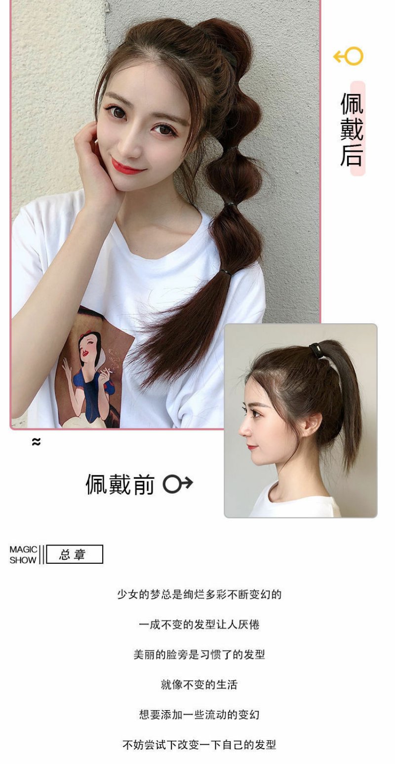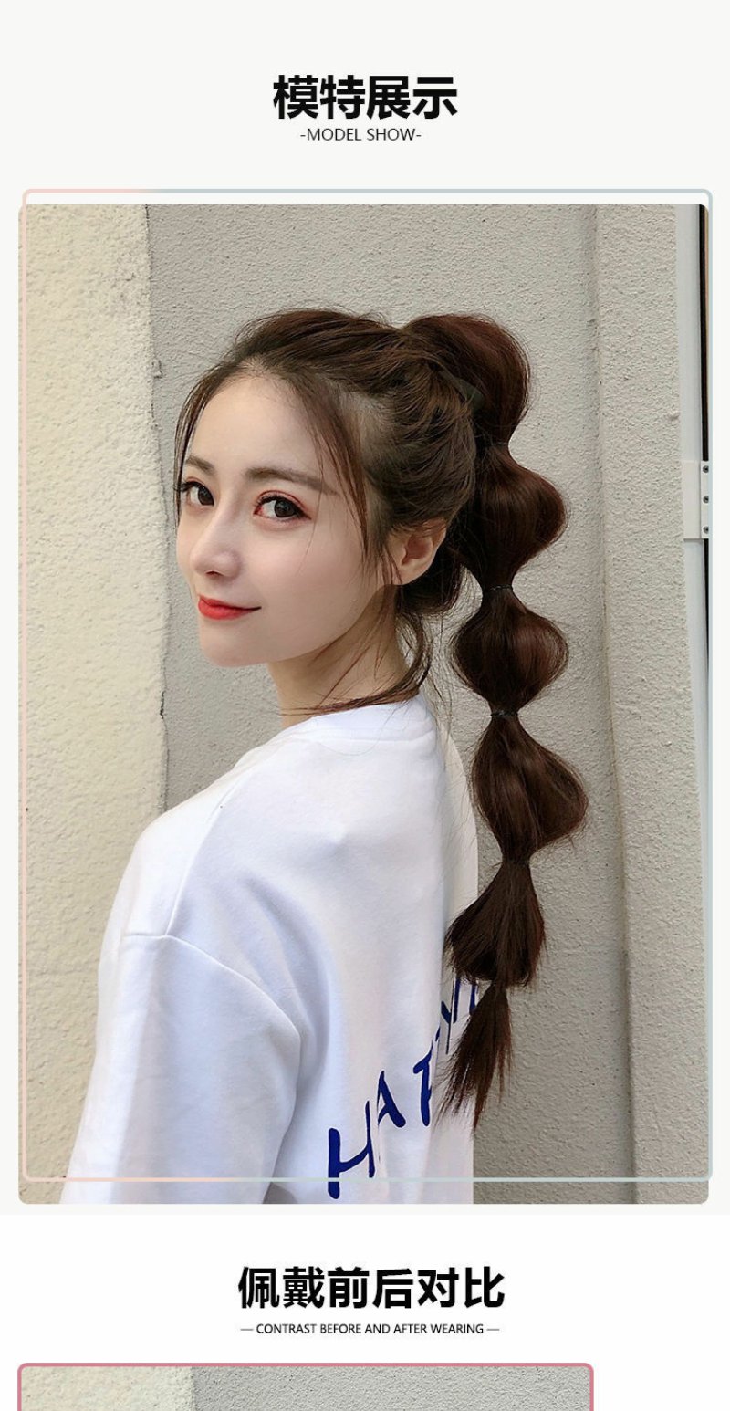 网红泡泡假发马尾女假发片绑带式双灯笼高马尾自然逼真假马尾辫子