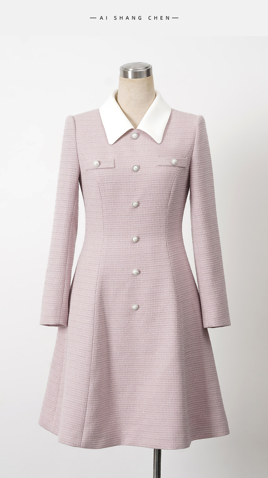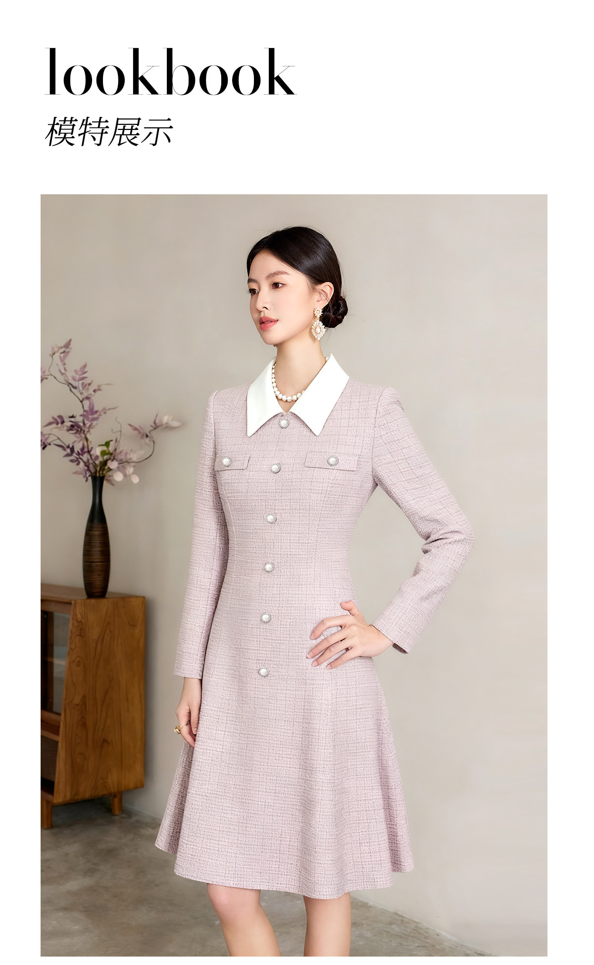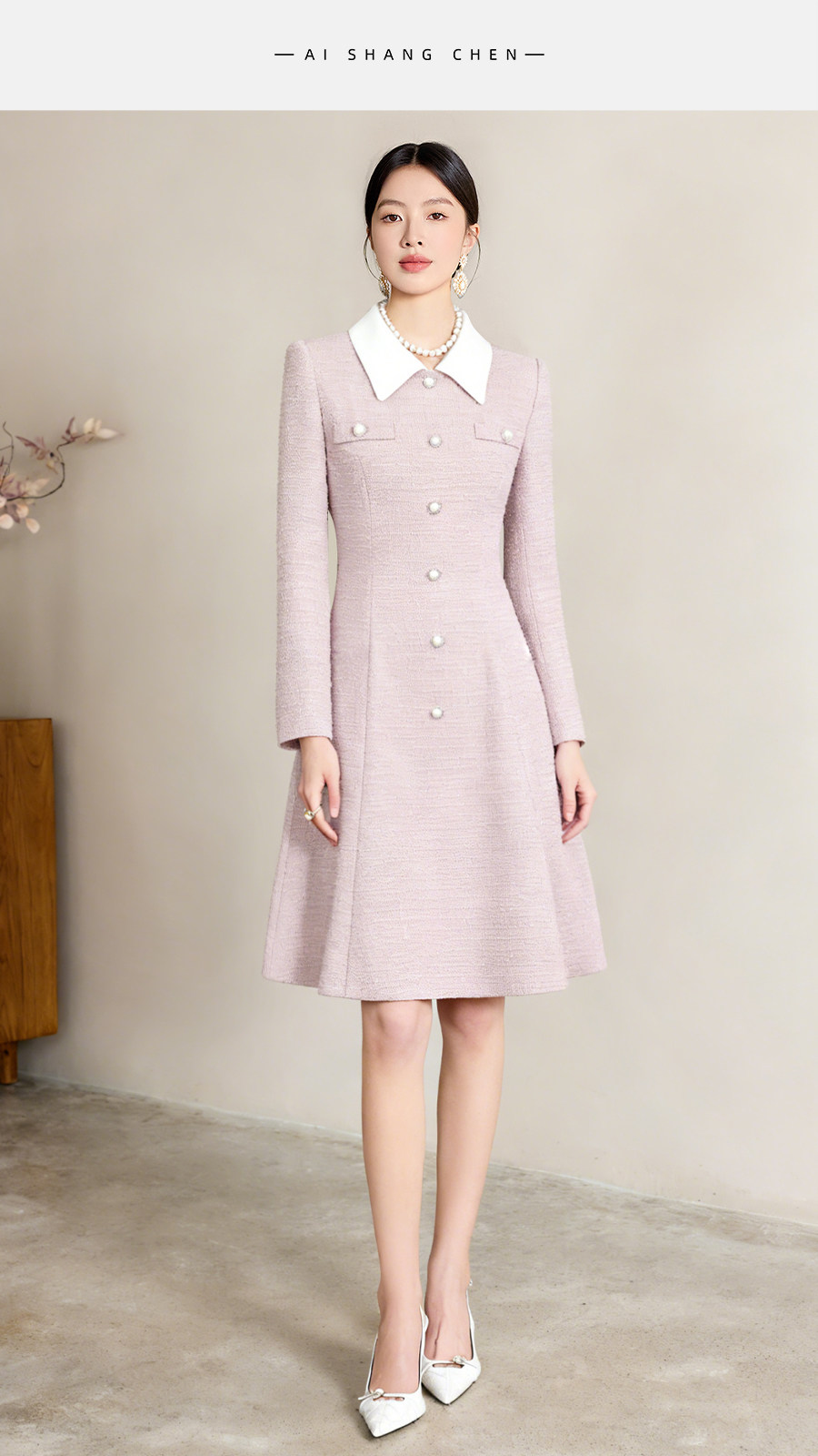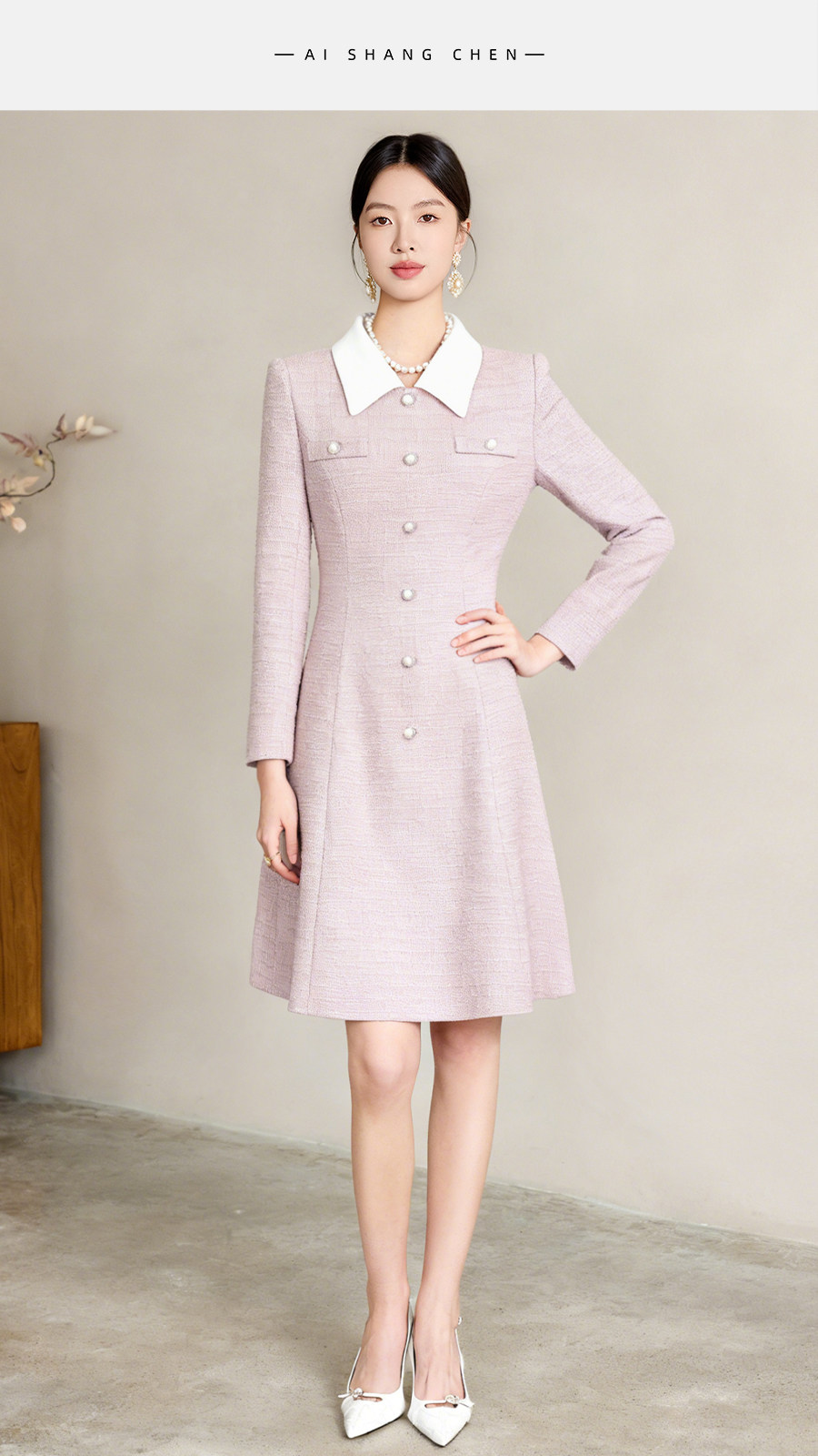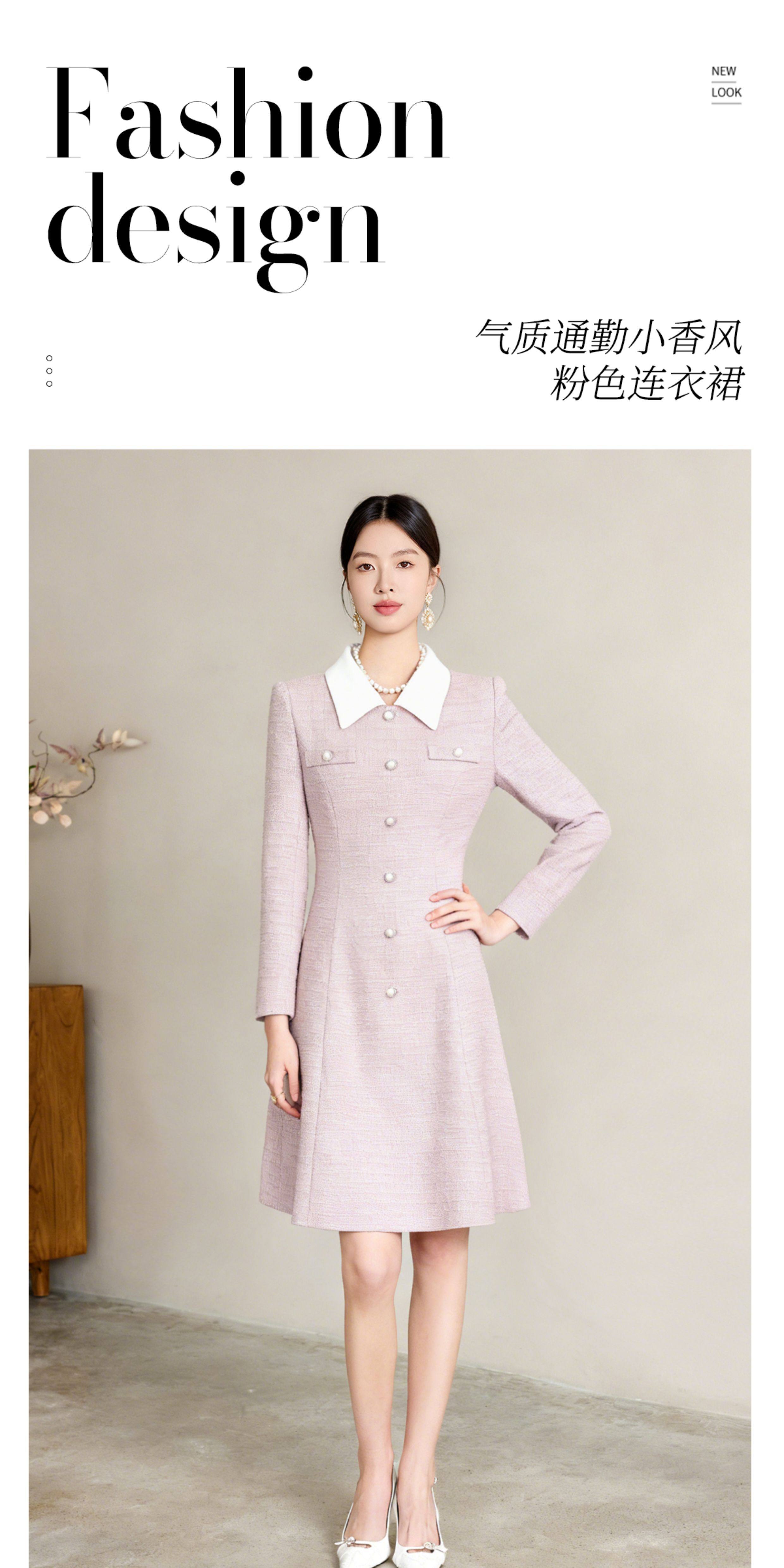 艾尚臣清冷富家千金穿搭小香风娃娃领连衣裙女通勤气质A字裙优雅