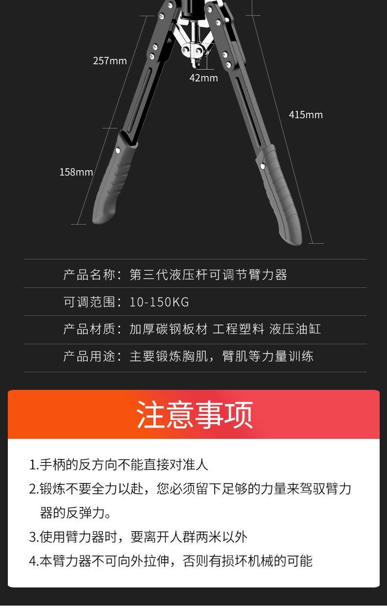 臂力器可调节液压臂力棒10-300斤男健身器材家用握力棒练胸肌臂肌