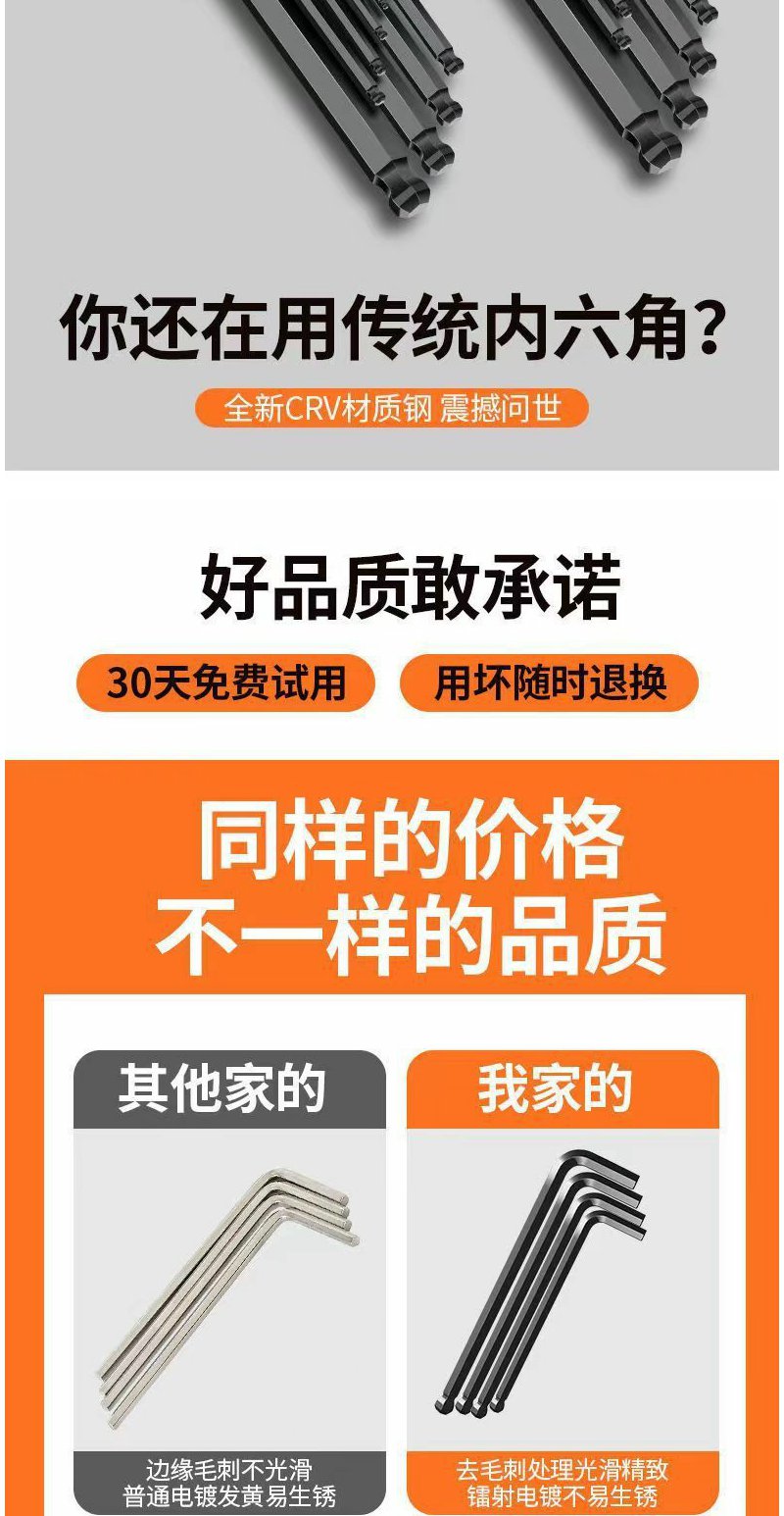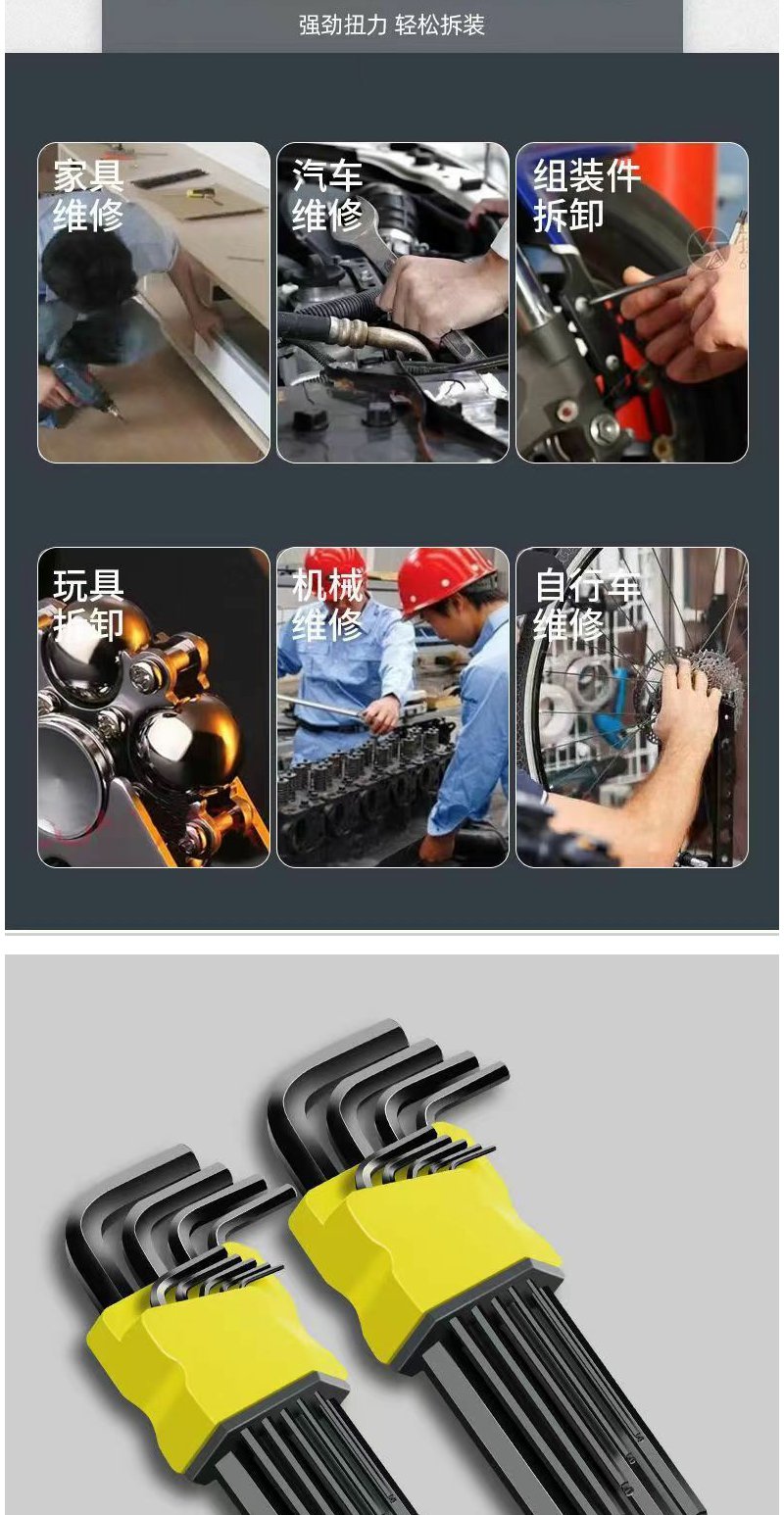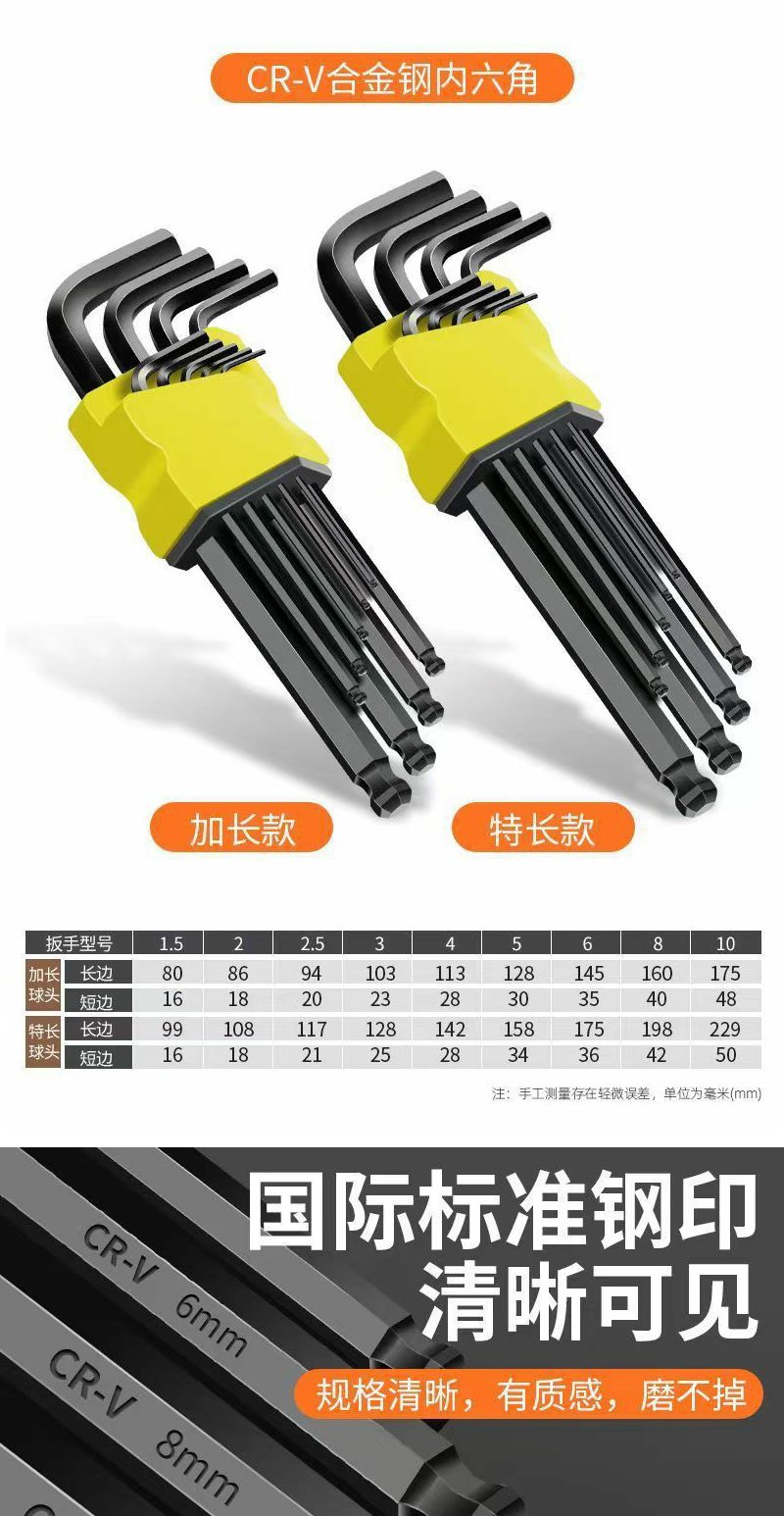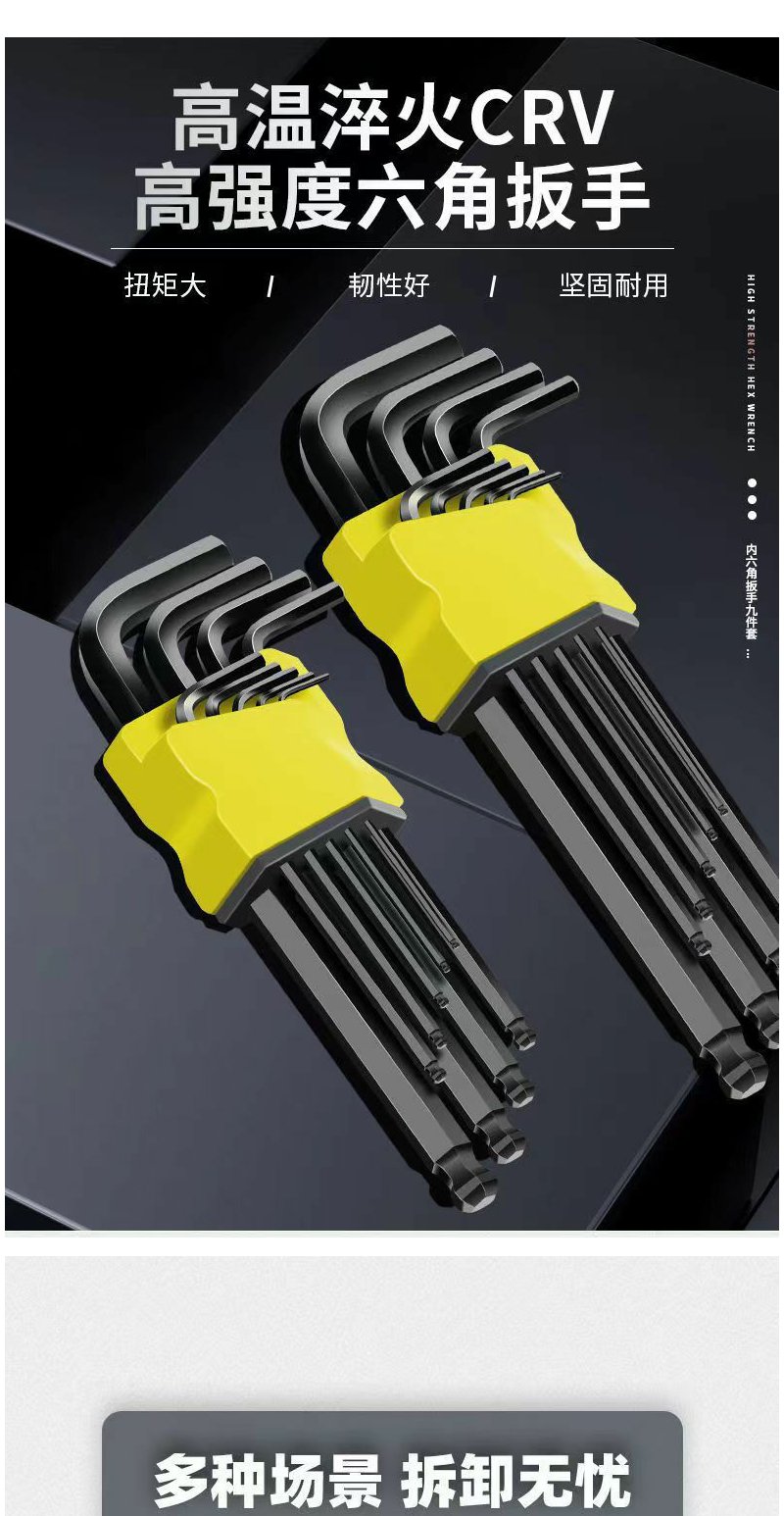 六棱德国品质高硬度内六角扳手9件套螺丝刀组合套卡装内六角工具套