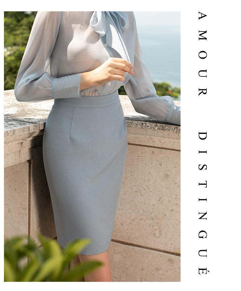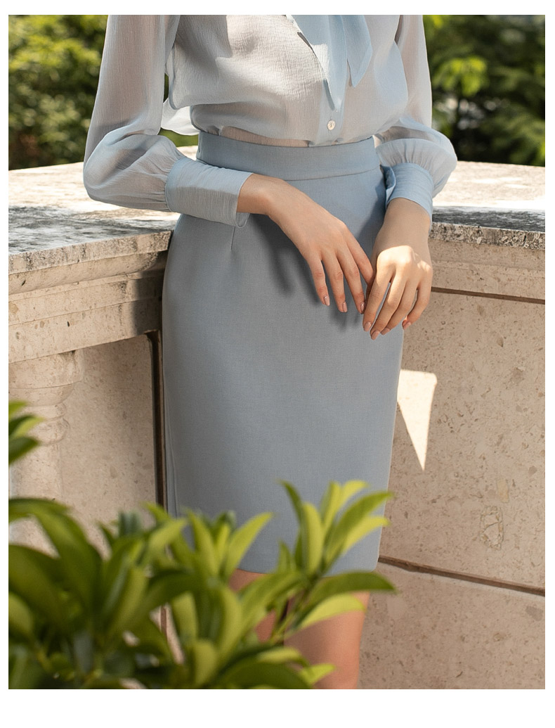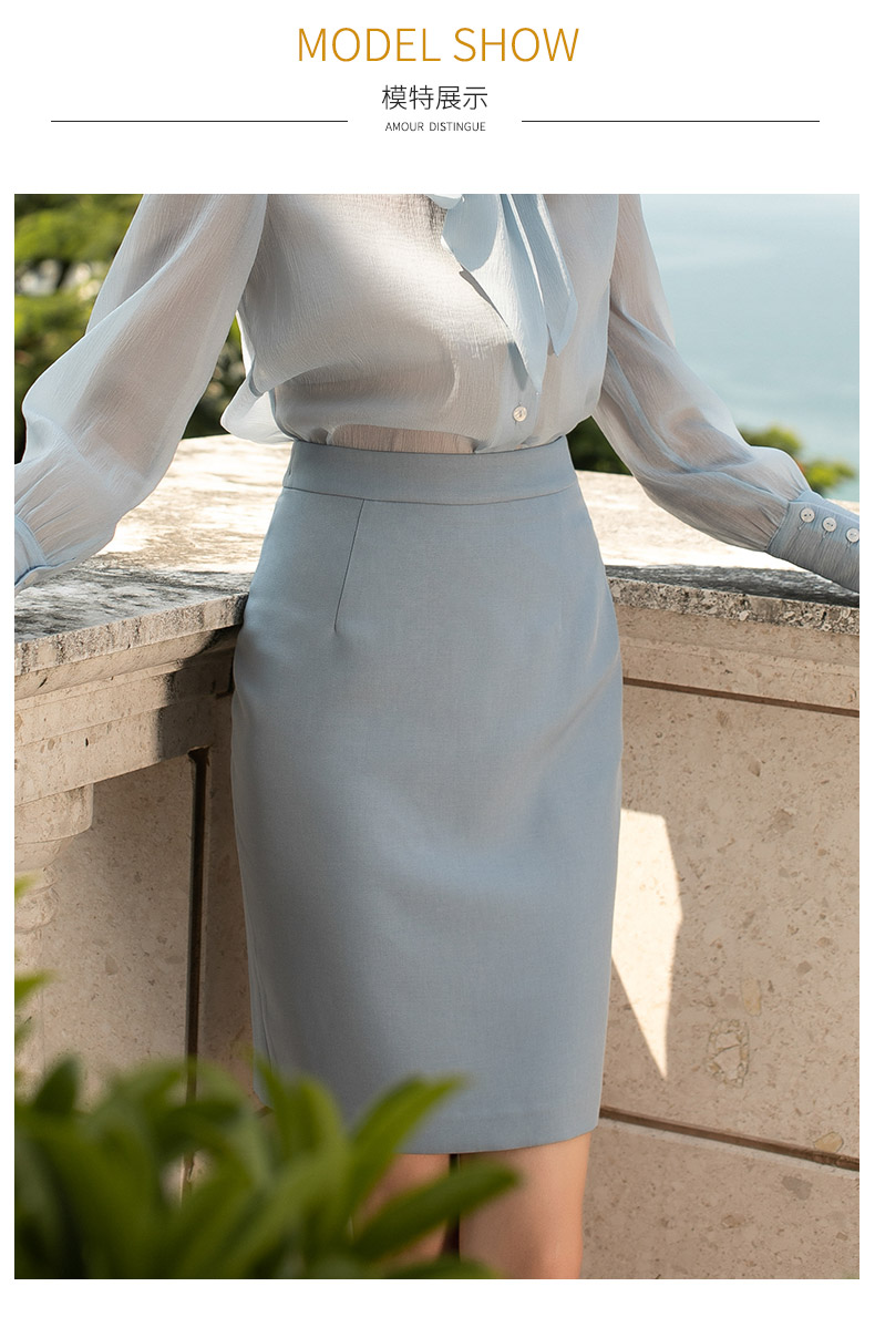 小香风蓝色半身裙高腰修身中长款包臀裙