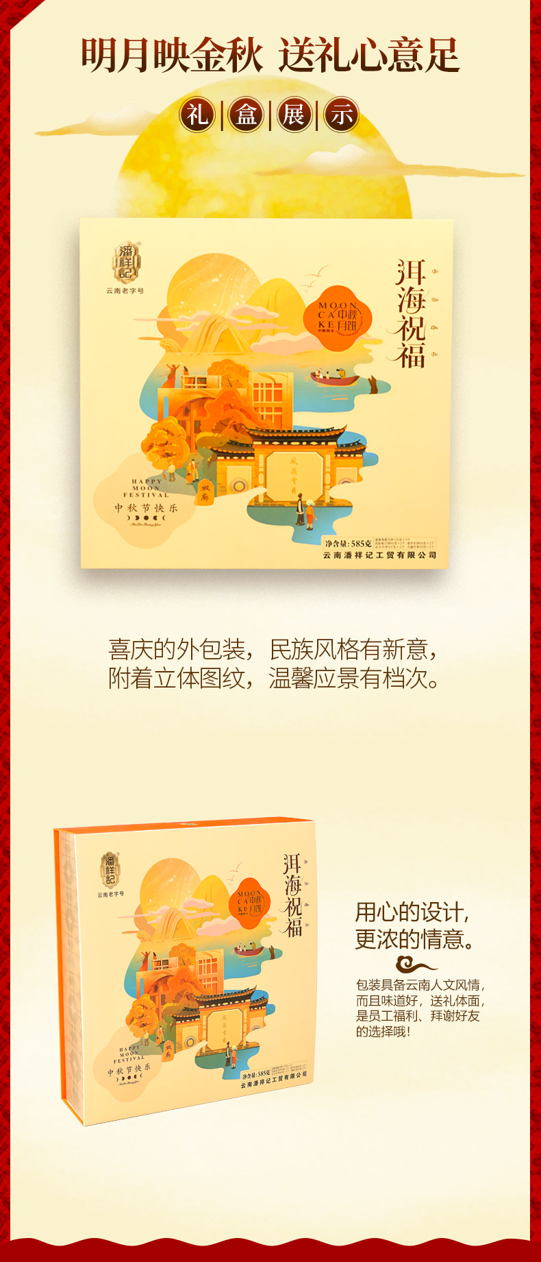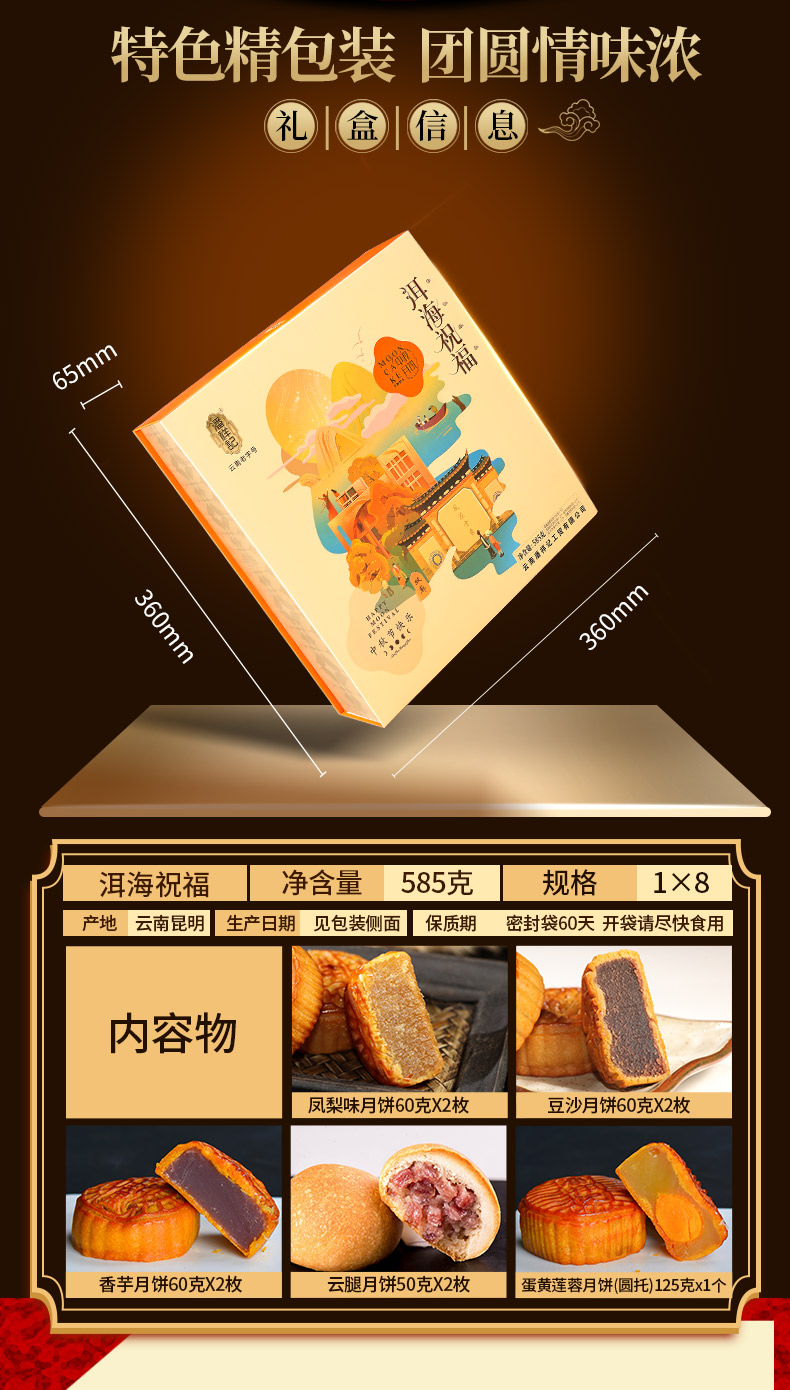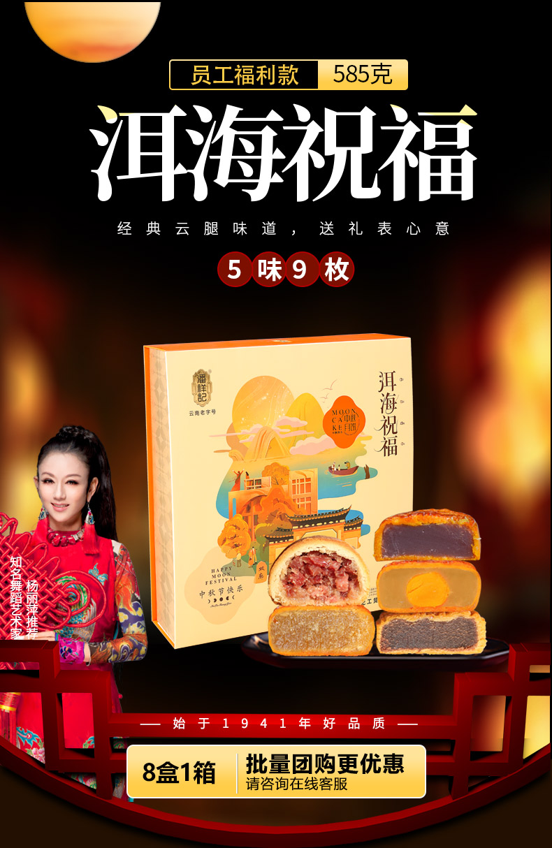 【洱海祝福】潘祥记月饼礼盒585克 5味9枚滇式月饼礼盒
