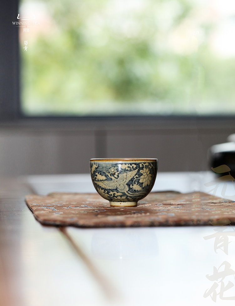 问鼎旗下留青汝瓷椒唐韶秀杯(凤凰于飞)(缺货)