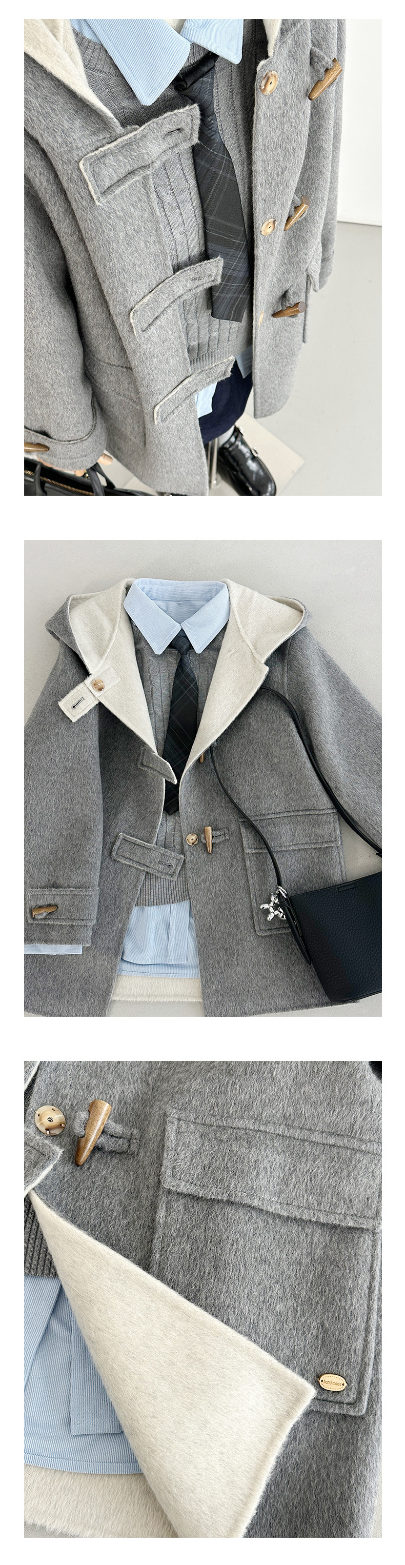 【漫游冬季】2024新款学院风格雷系复古时尚牛角扣少女感甜妹毛呢大衣外套