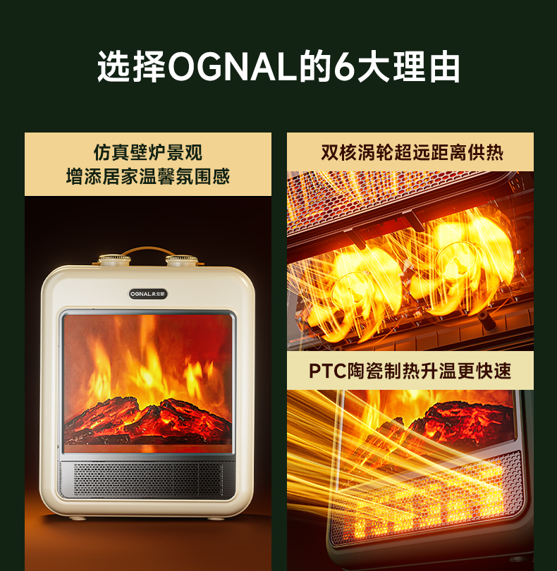 奥戈那OGNAL | 3D火焰暖风机 HD18-R61白色
