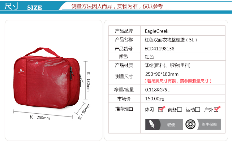 EAGLECREEK 双面经典衣物打理袋(5L) 收纳袋