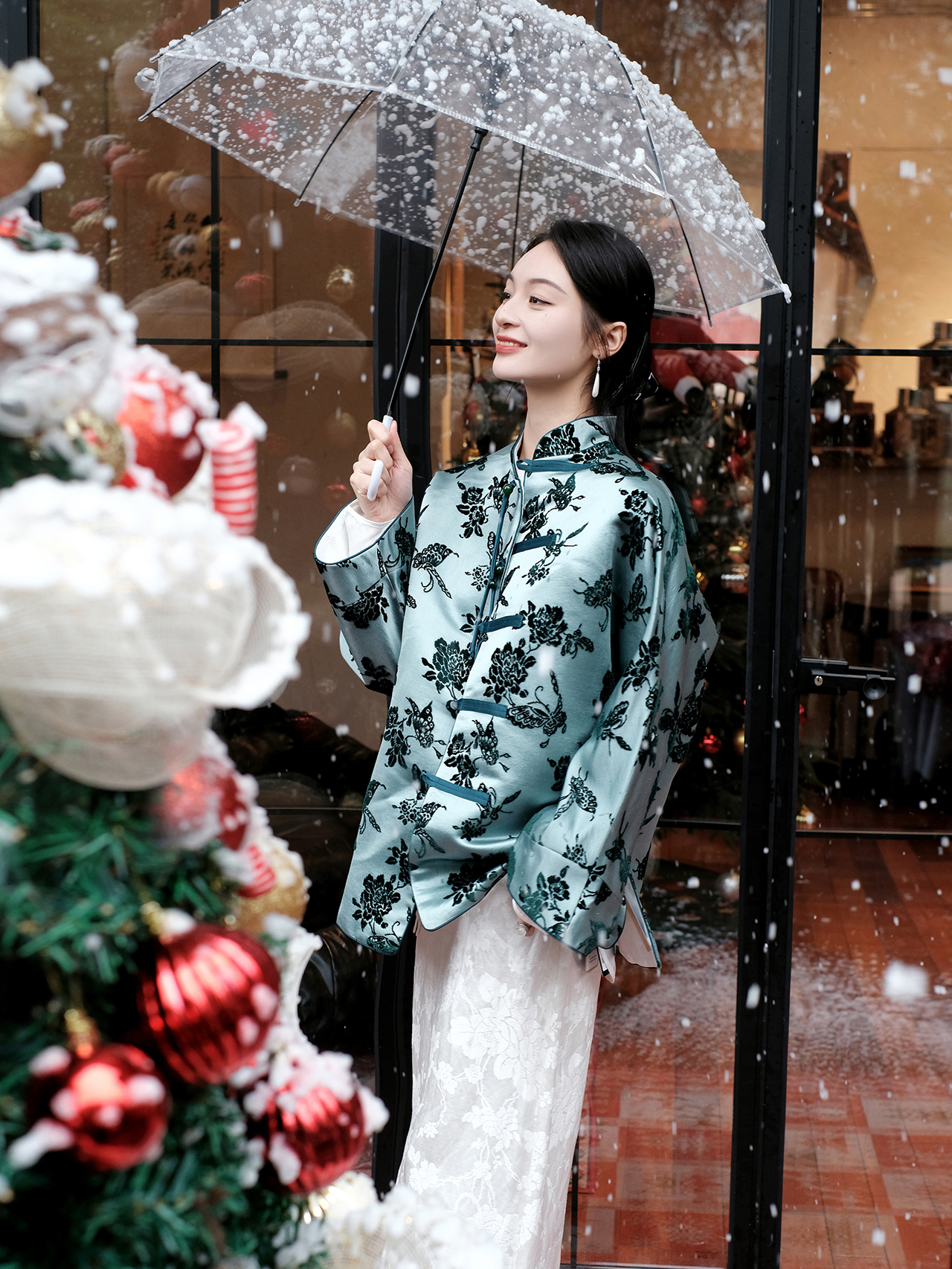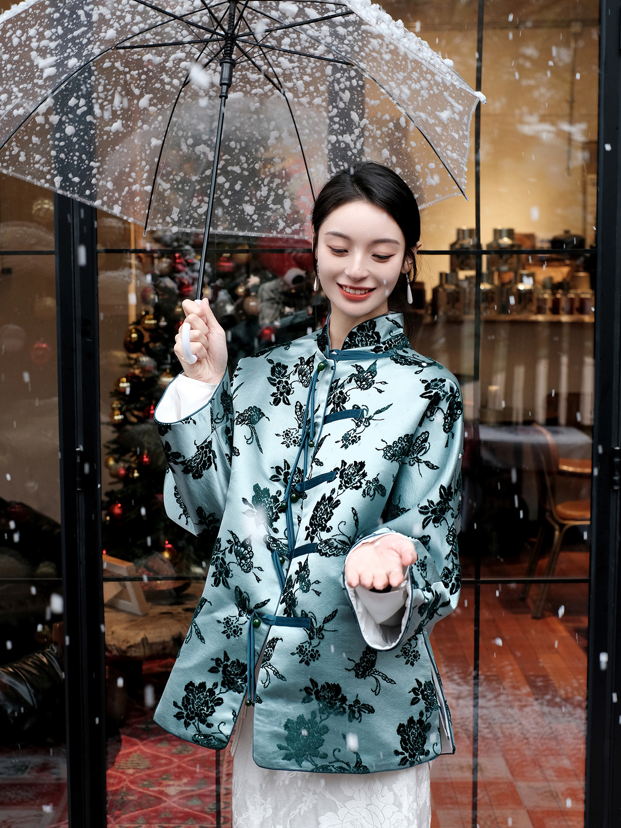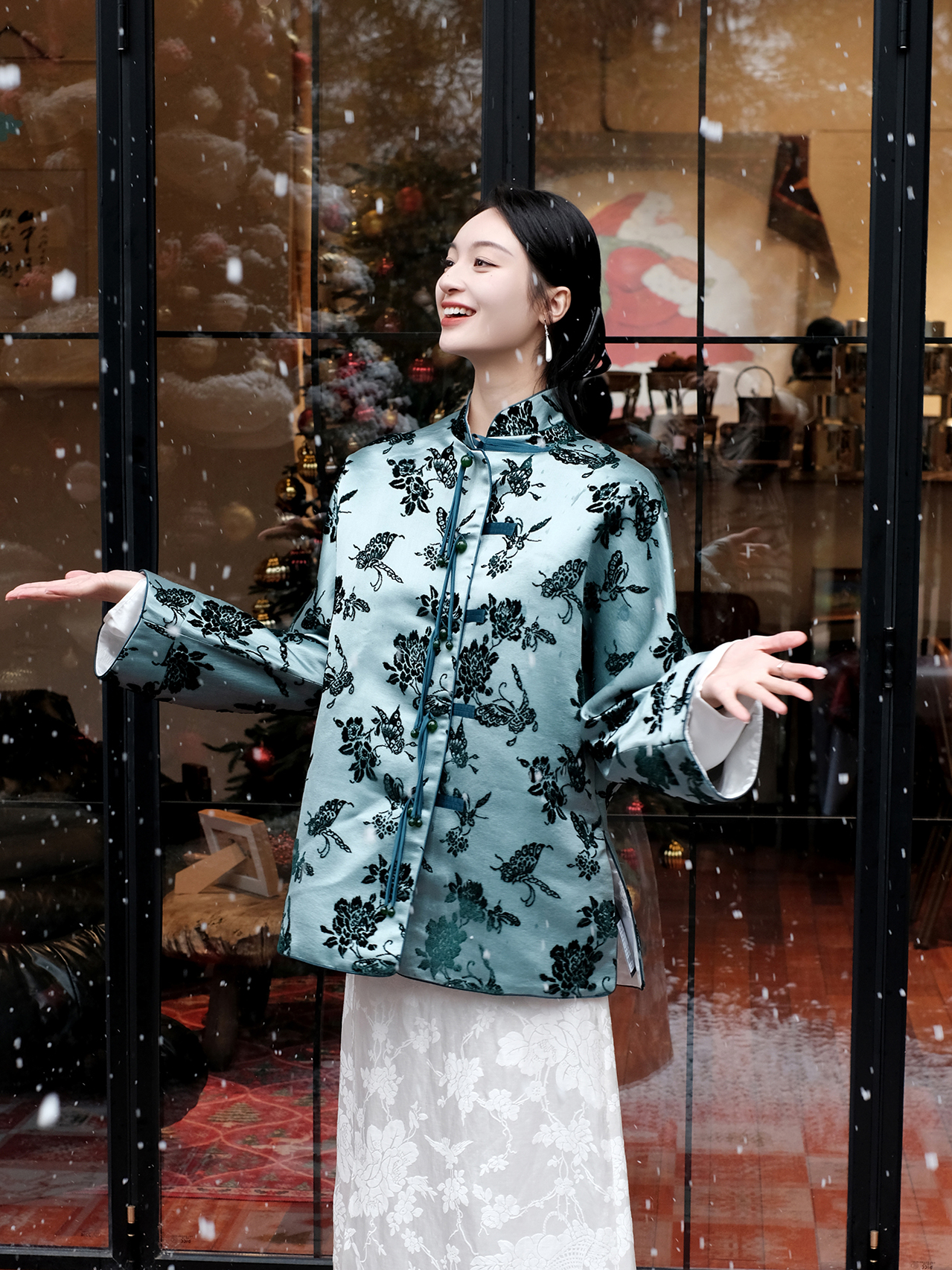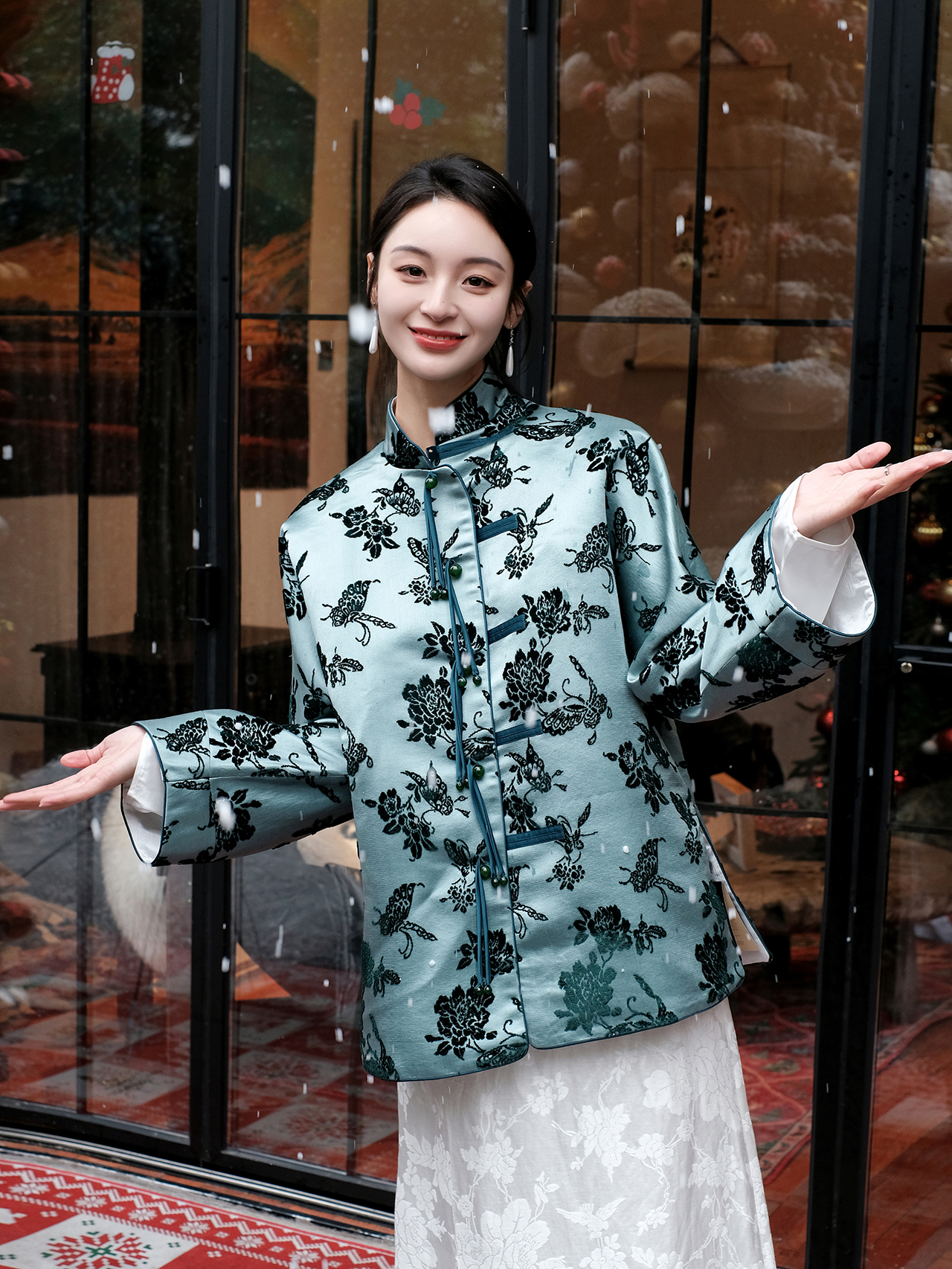 盛唐牡丹| 绿矾色蝶恋花纹漳缎外套