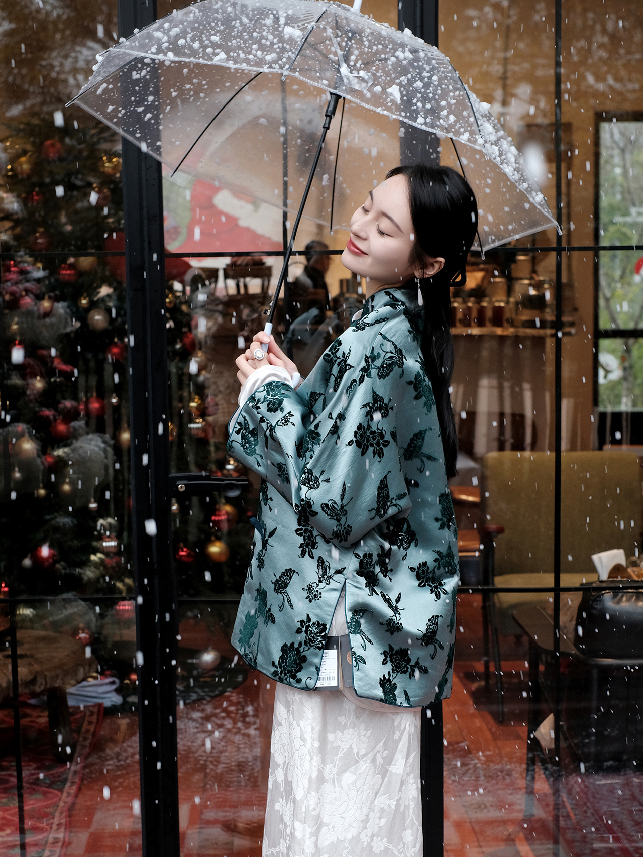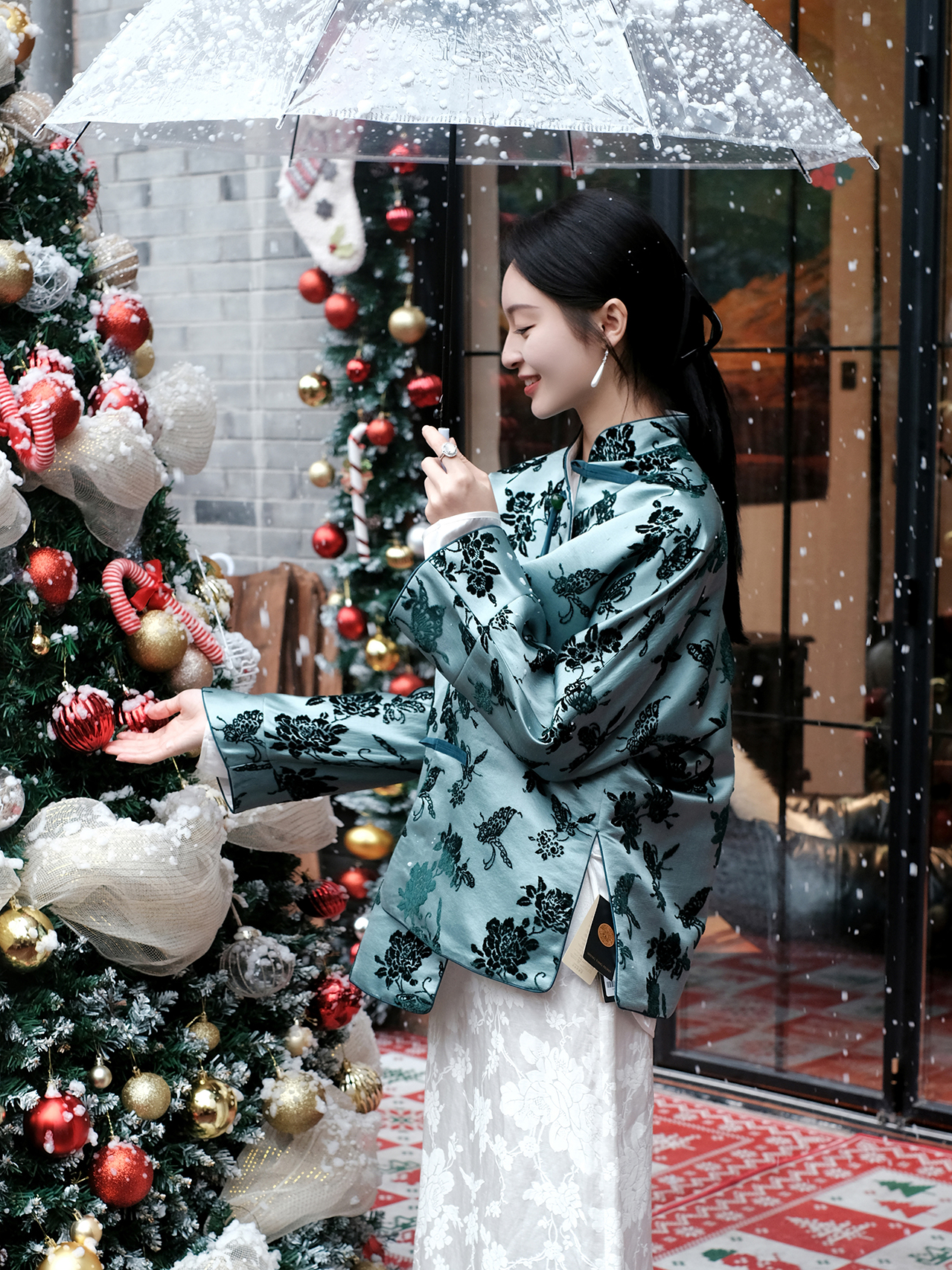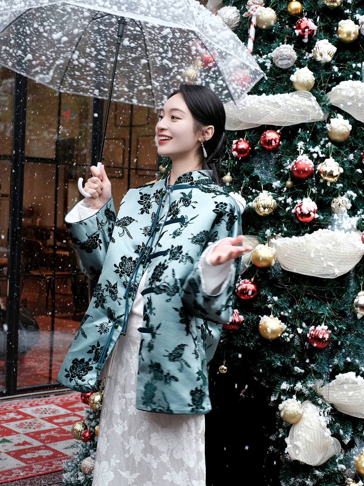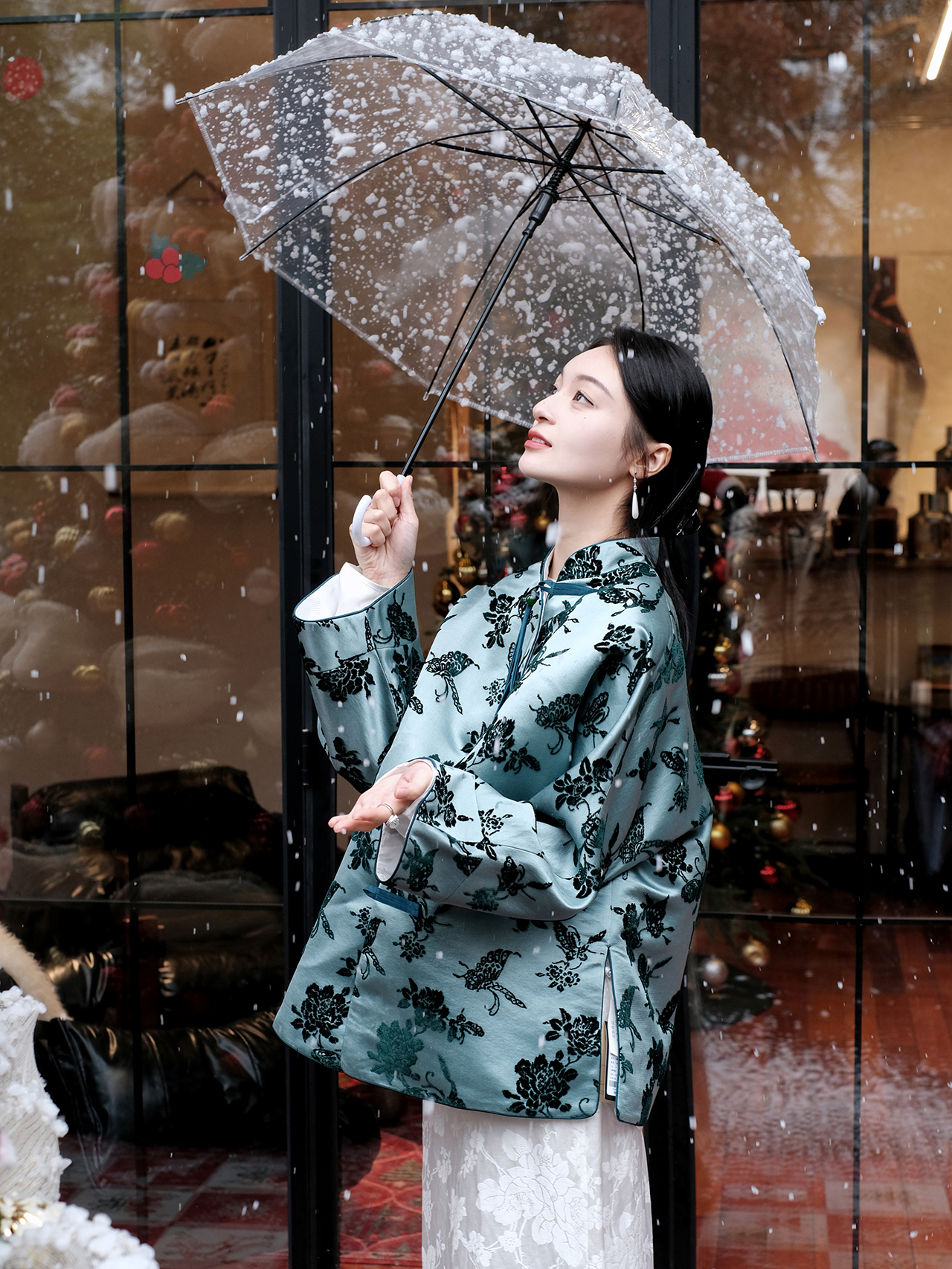 盛唐牡丹| 绿矾色蝶恋花纹漳缎外套
