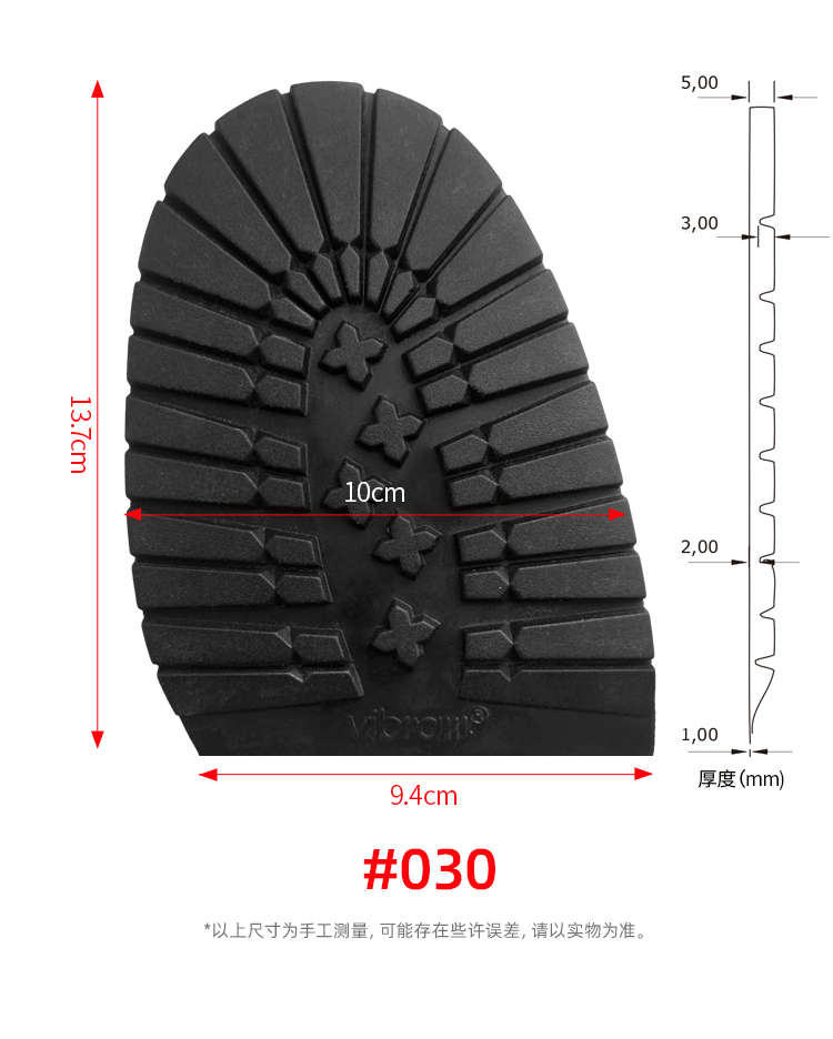 意大利进口Vibram户外运动休闲皮鞋鞋掌前掌后掌贴3334 5271 女款