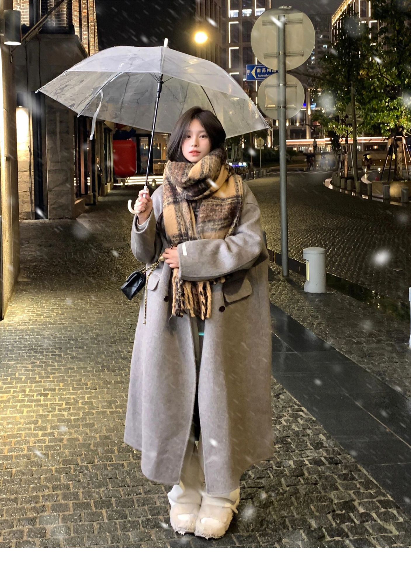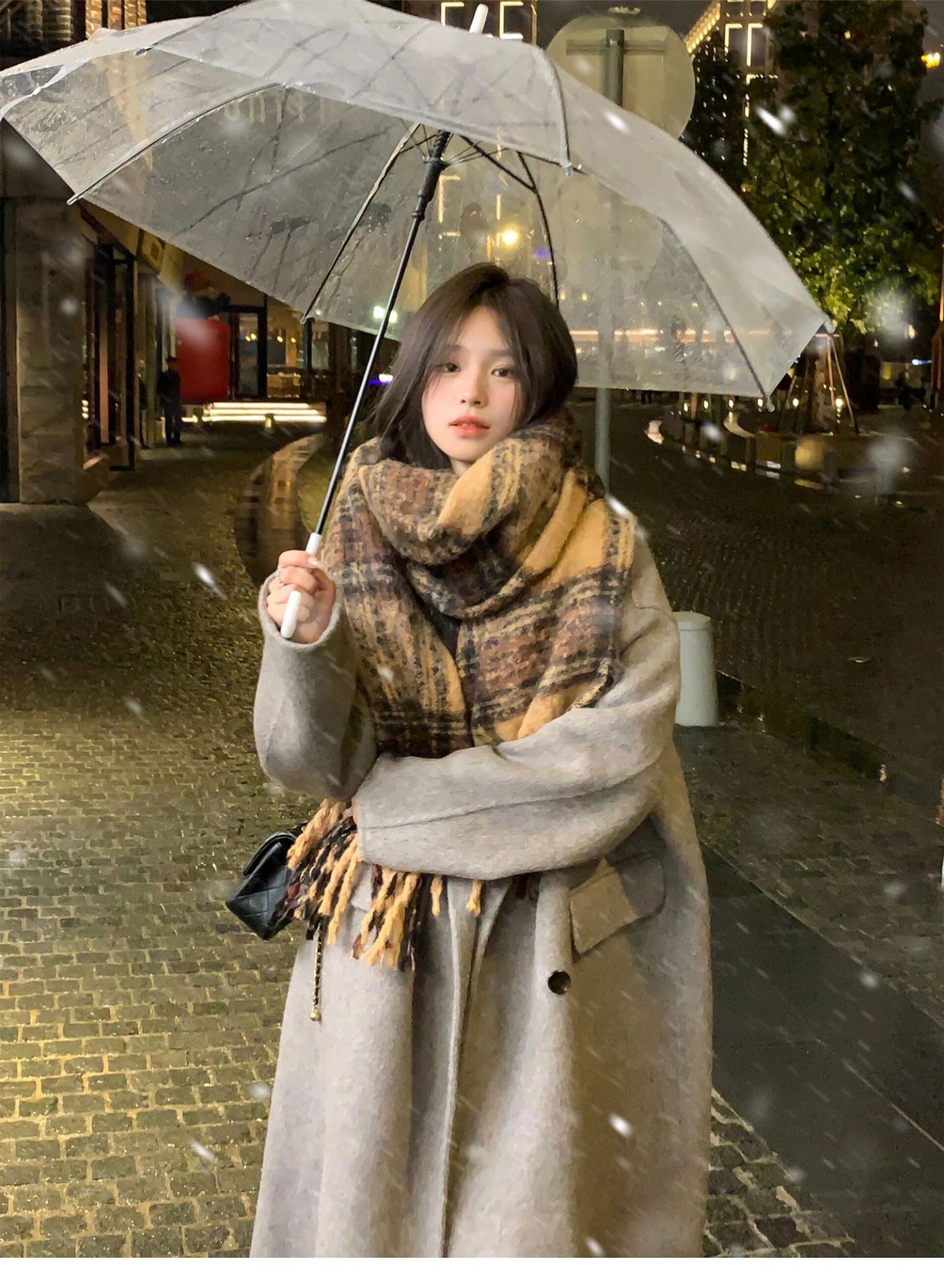 复古学院风咖啡色围巾女冬季马海毛百搭披肩高级感美拉德毛绒围脖