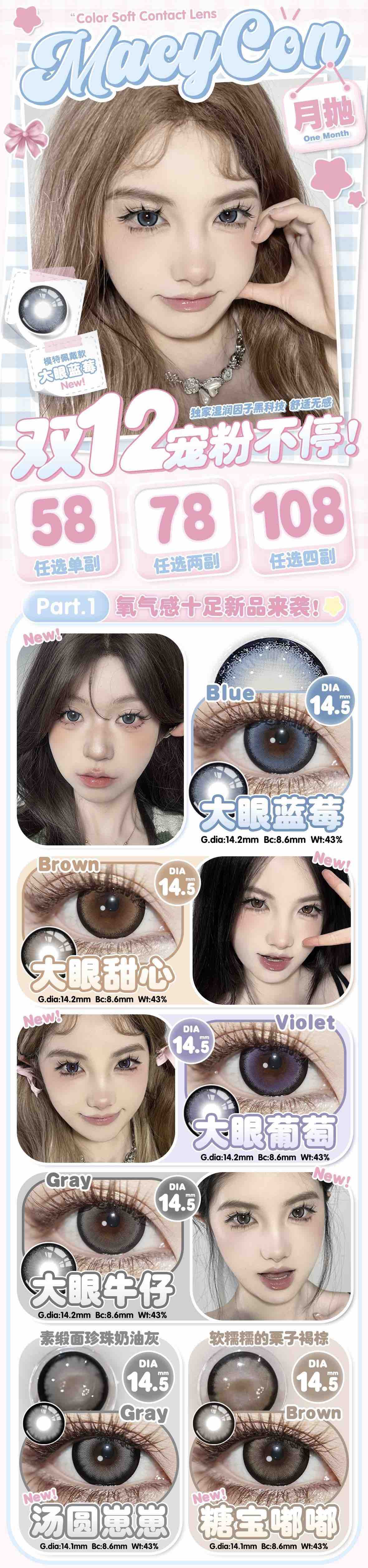 Macycon月抛双12活动 大直径专场!活动68/2副;98/4副(下单备注款式度数)
