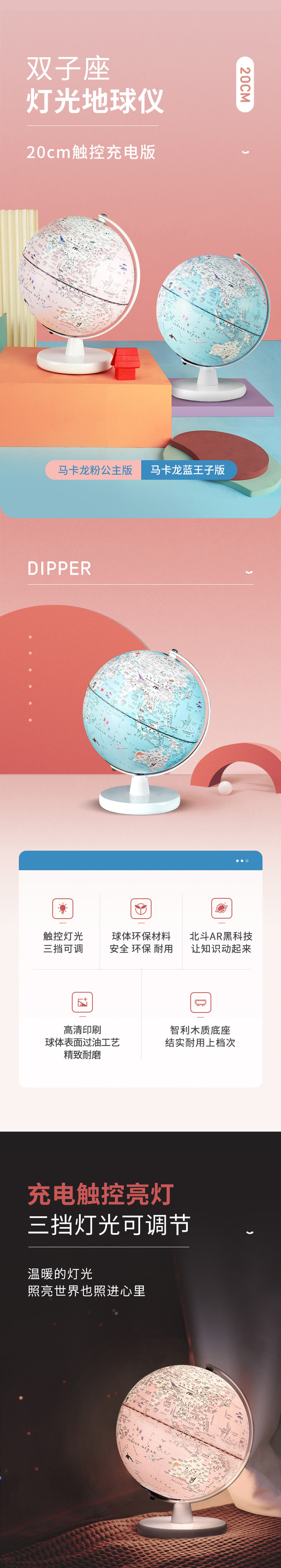 北斗20cm双子座触控灯光地球仪