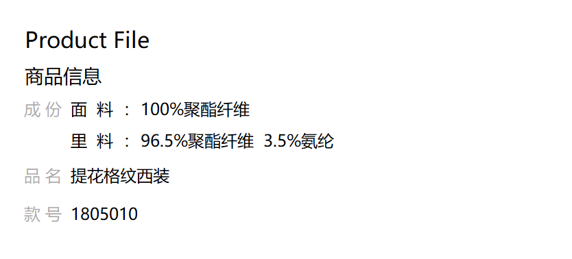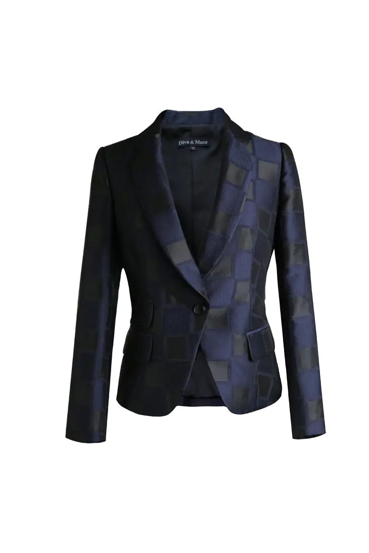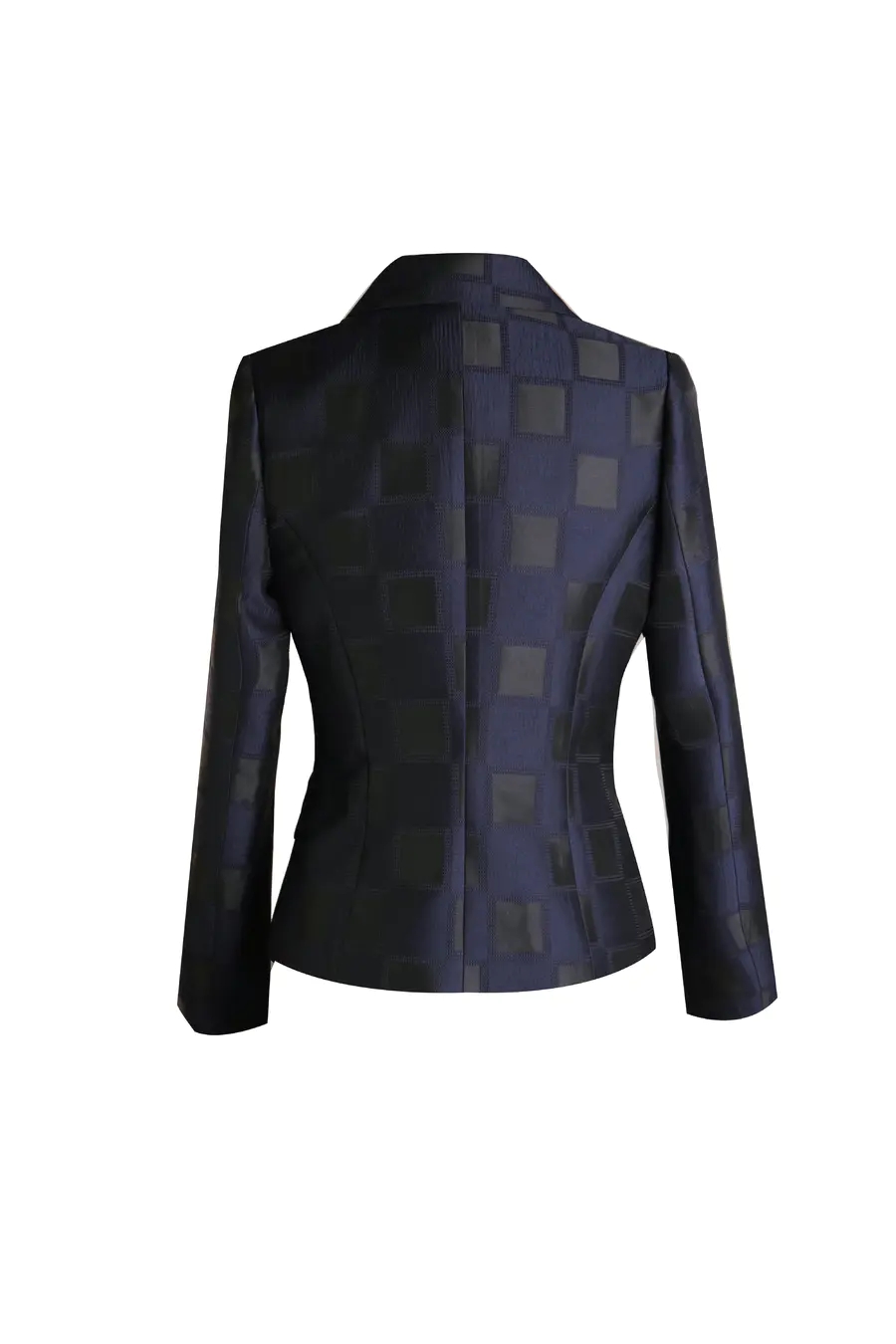 定制—“轻奢风”时尚精致提花格纹修身一粒扣西装外套 1805010