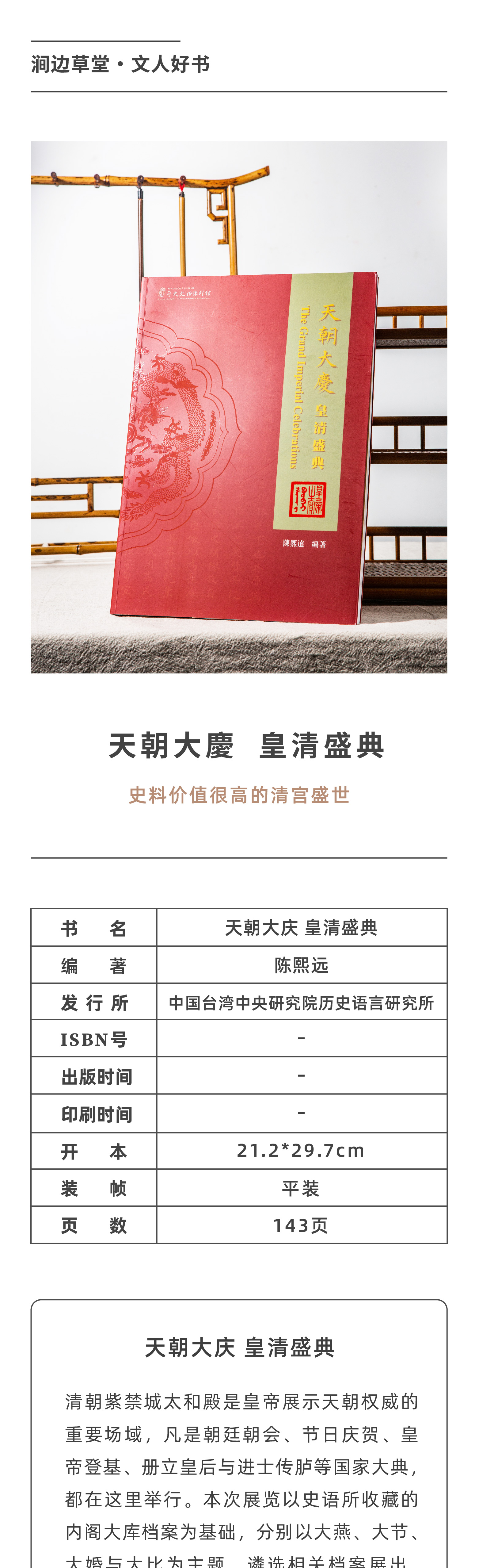 【绝版好书】《天朝大庆 皇清盛典》大16开92页,2020年台中研院史语所初版