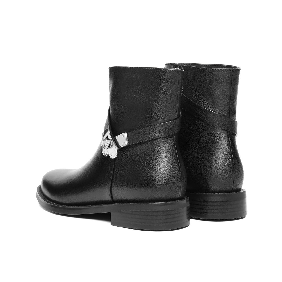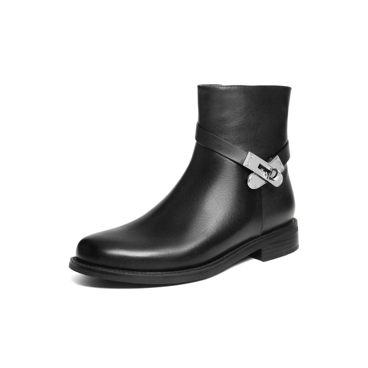 BF楼百丽女靴真皮通勤时装靴新款粗跟瘦瘦靴反绒面中筒短靴3QF48DD5