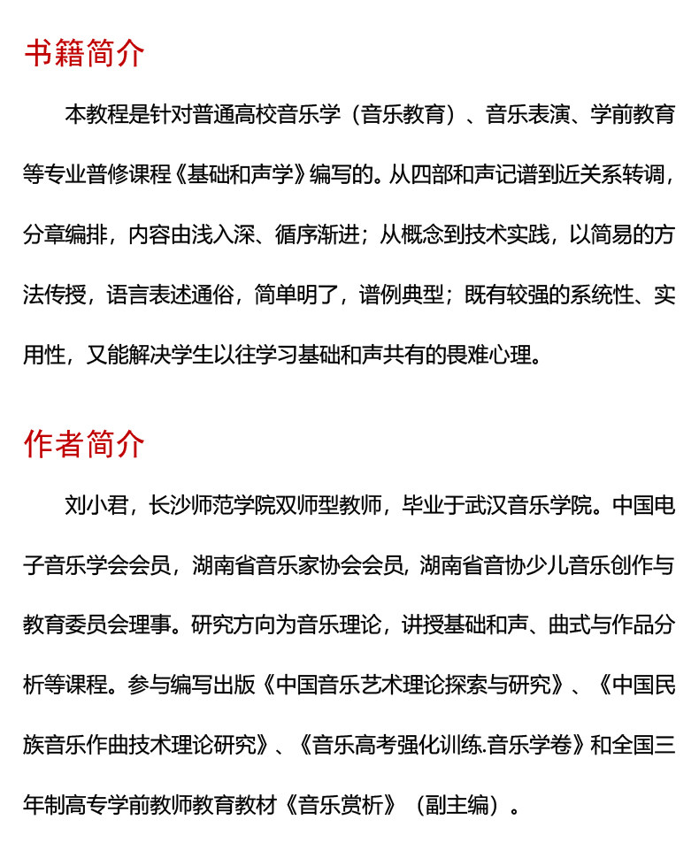 基础和声普修教程 高等院校音乐通用教材 刘小君 音乐学音乐教育