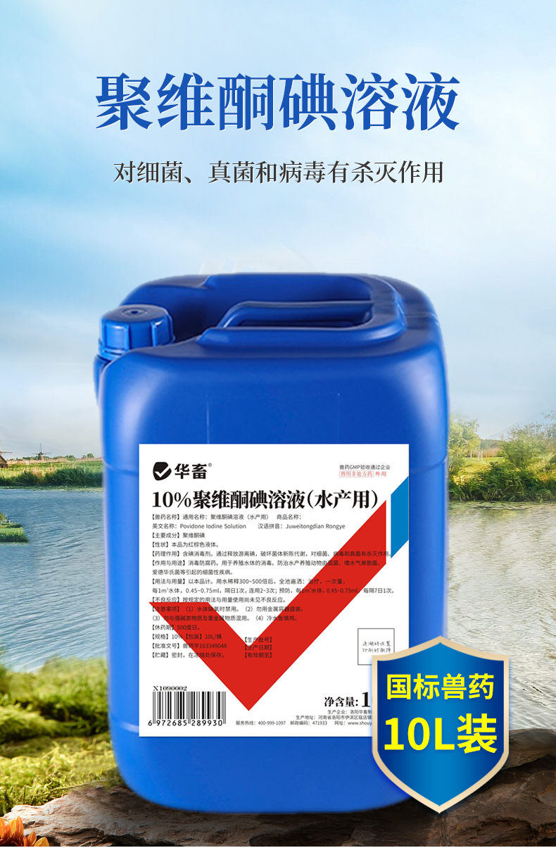华畜水产 10%聚维酮碘溶液水产用10L 败血症 烂腮 化皮症