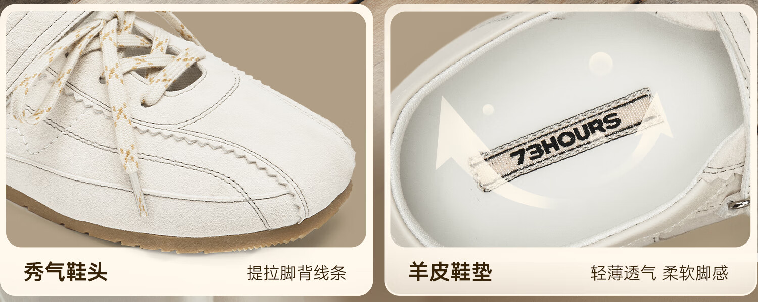【2F】73Hours女鞋奇妙治愈2025秋季新品休闲鞋系带圆头平底德训鞋