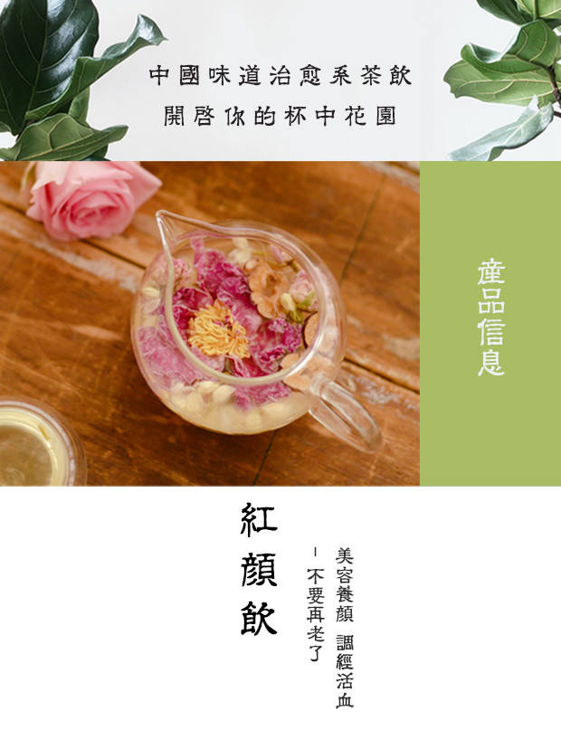 四种套装:红颜饮+美目饮,红颜饮+清润饮,红颜饮+舒甘饮,红颜饮+窈窕饮