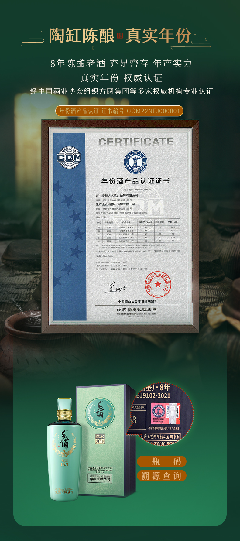 毛铺 草本真年份酒8年 52度 500ml 盒装 送礼 宴请 自饮 朋友聚餐