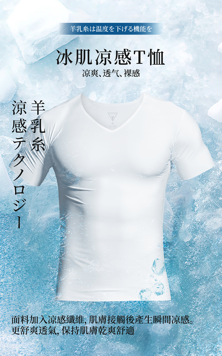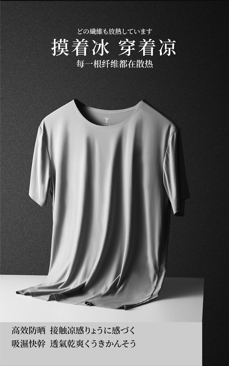 【羊奶丝冷感T恤,穿上体感直降5°】日本MILMUMU羊奶丝无痕冰感T恤、一片式无痕男款T恤 速干凉爽不闷汗
