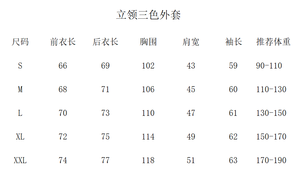 品名:立领三色外套