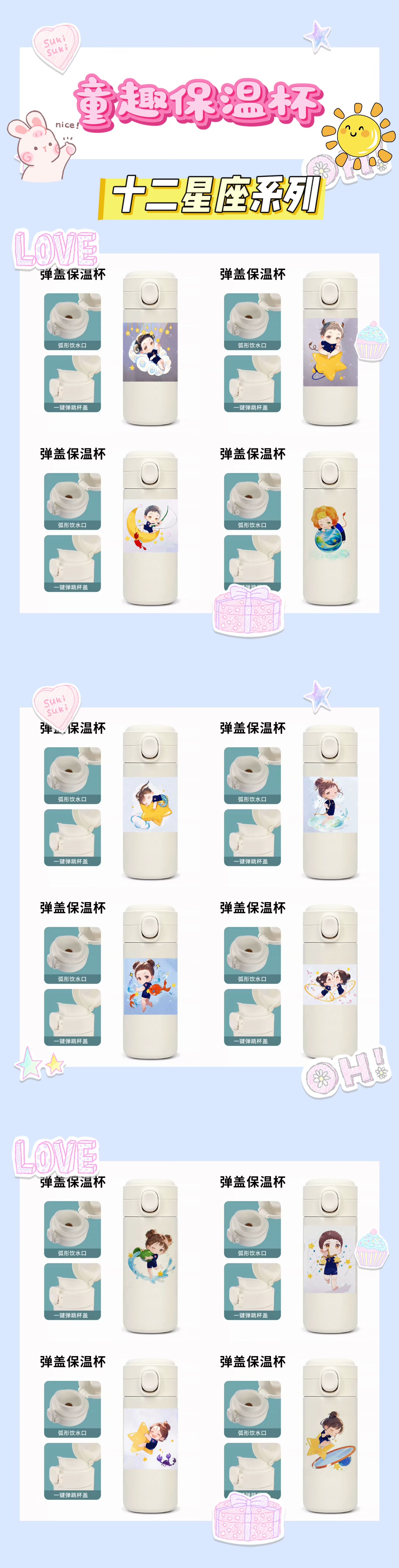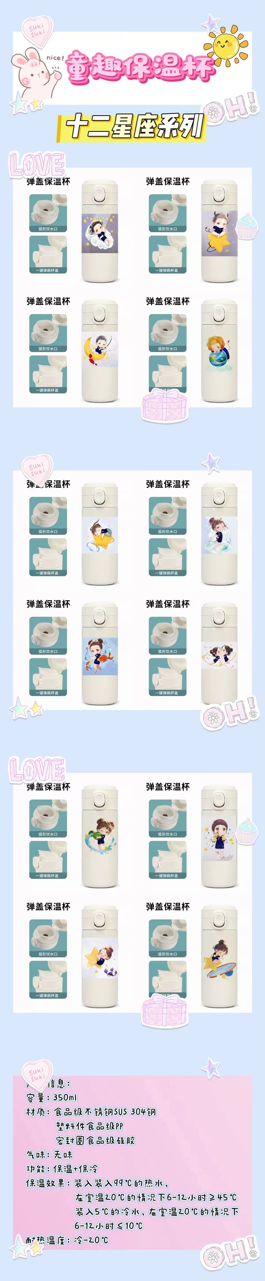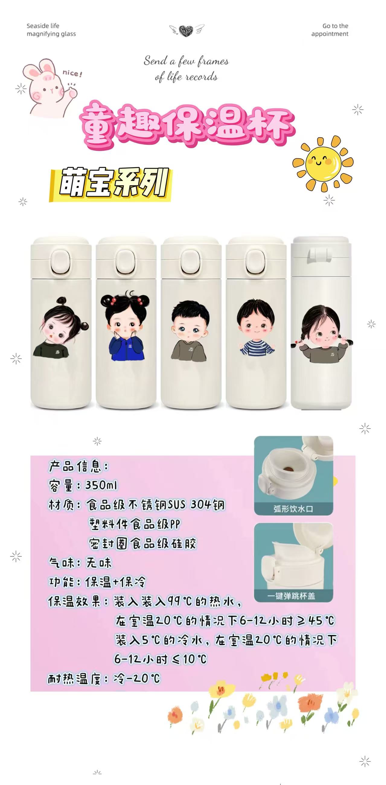【儿童可爱保温杯】可爱卡通萌版童趣弹盖304/316不锈钢保温杯