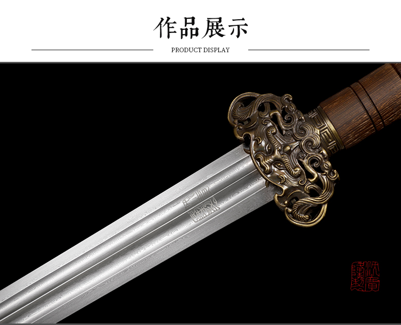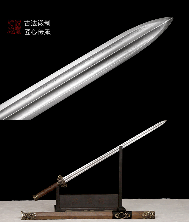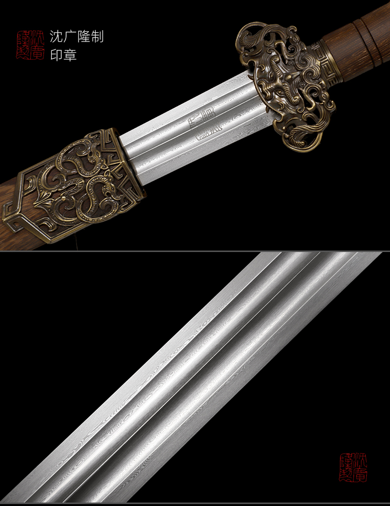 宏志明刀剑 龙泉传统刀剑 沈广隆宝剑 手工刀剑 花纹钢 未开刃