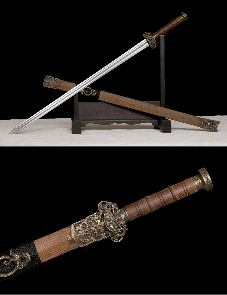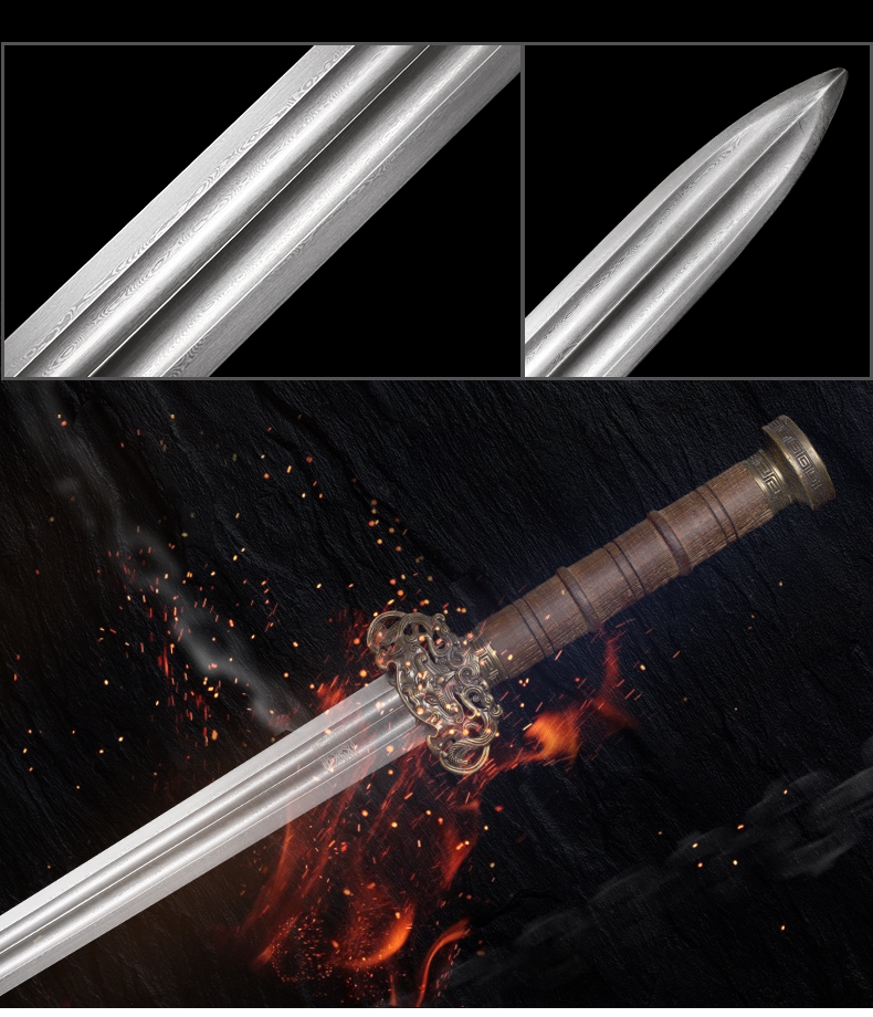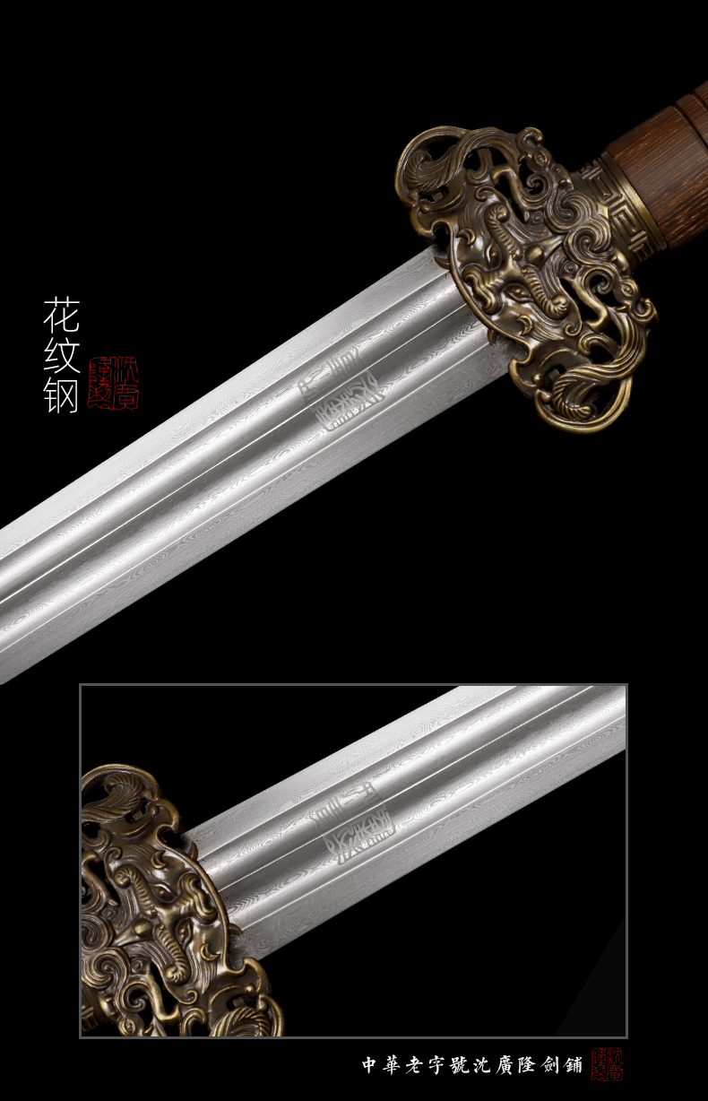 龙凤越王剑 长剑 硬剑 花纹钢一体宝剑 龙泉传统剑 沈广隆宝剑 未开刃