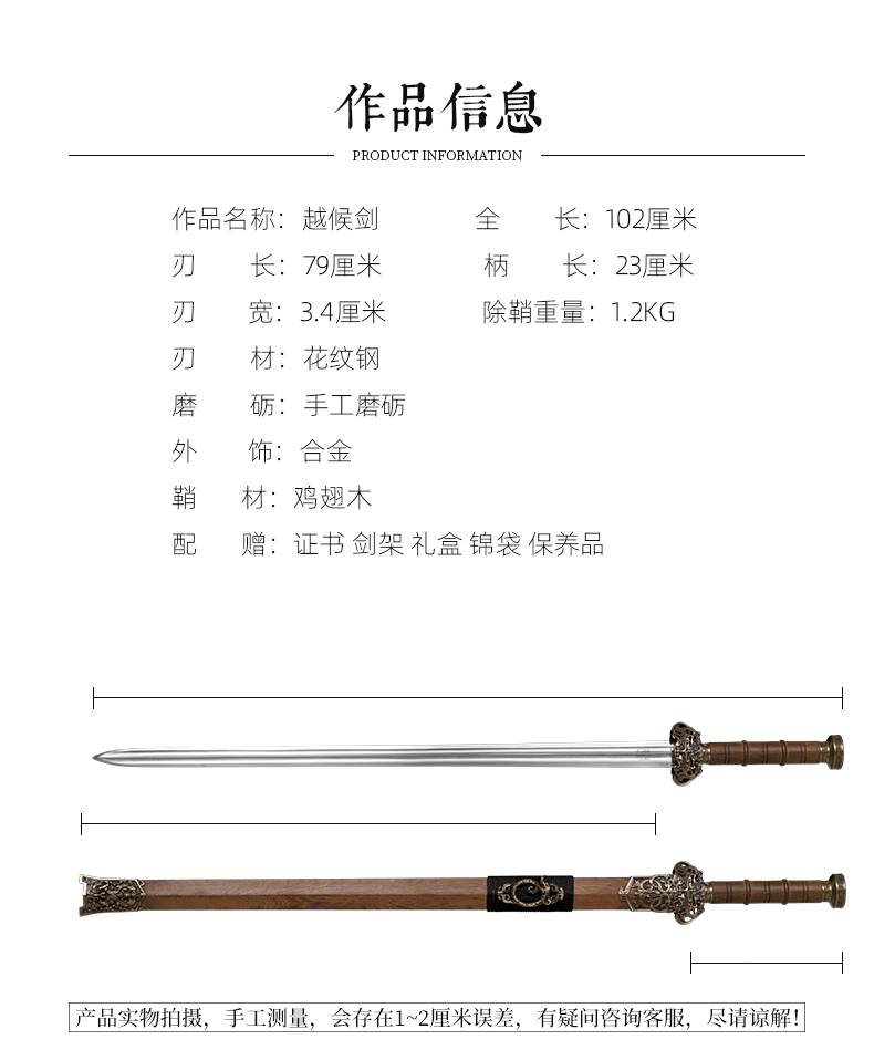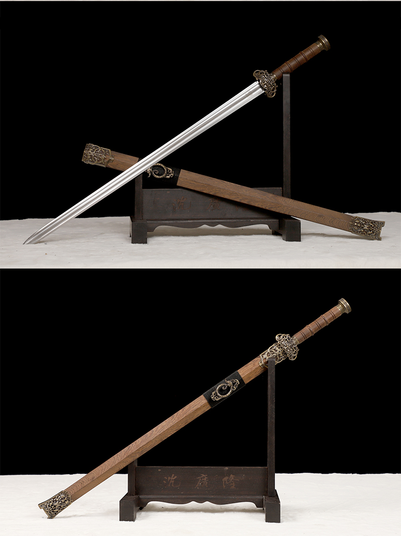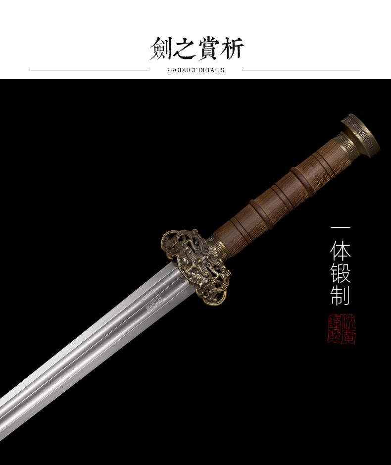越候剑 鸡翅木 龙泉沈广隆一体宝剑 花纹钢 未开刃