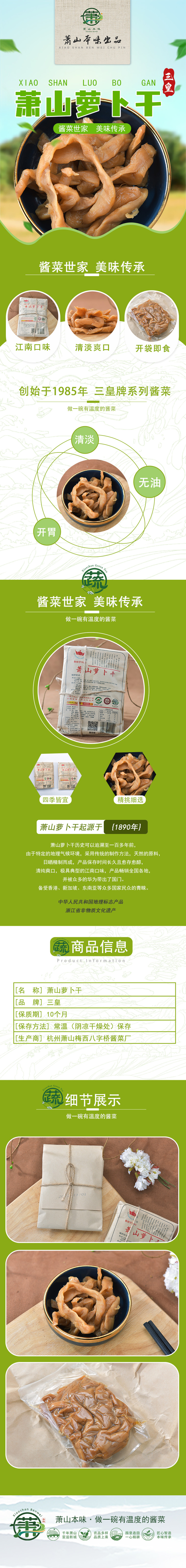 萧山萝卜干身为本地人从小吃的一个酱菜,口感脆,口味咸甜咸甜的,直接吃可以。