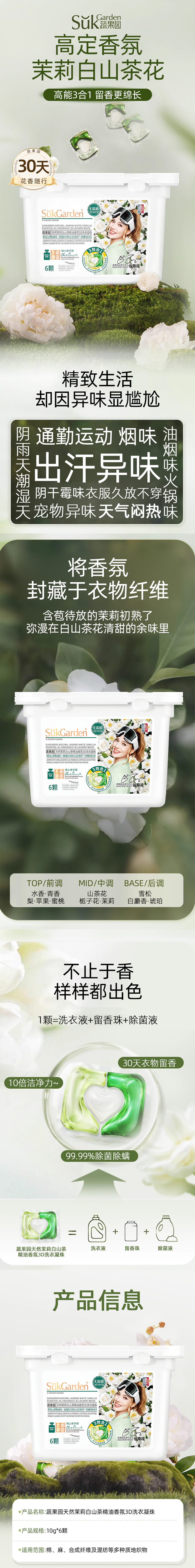 蔬果园天然茉莉白山茶精油香氛3D洗衣凝珠6颗【21003694】