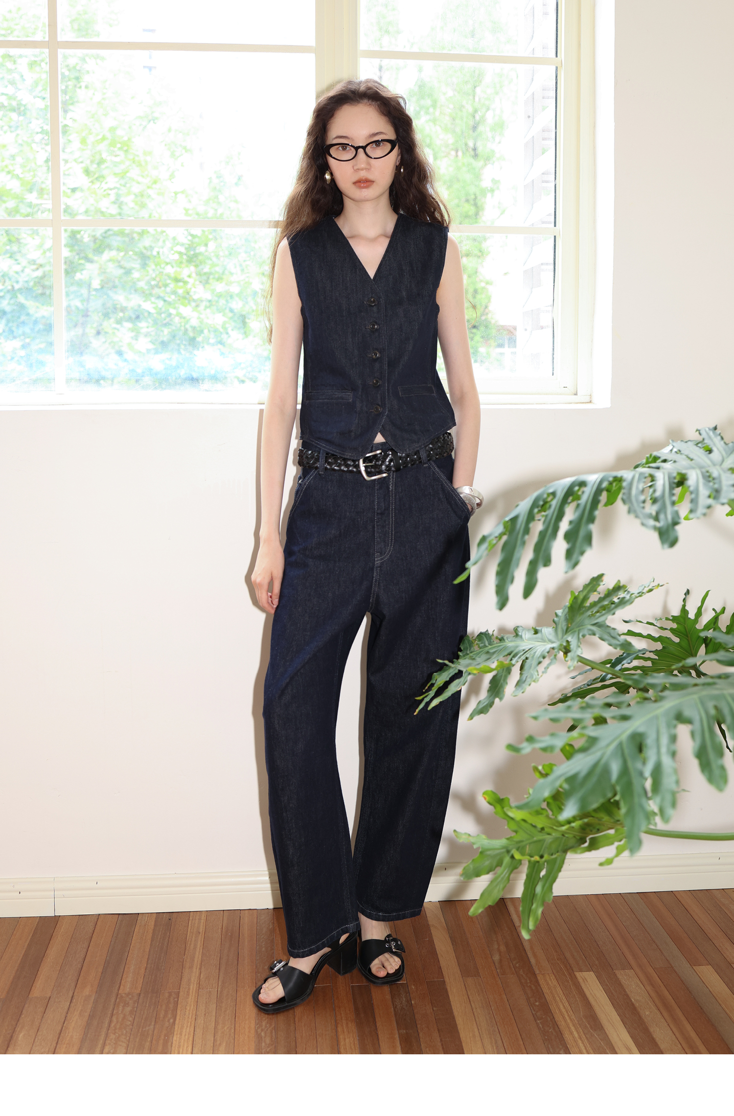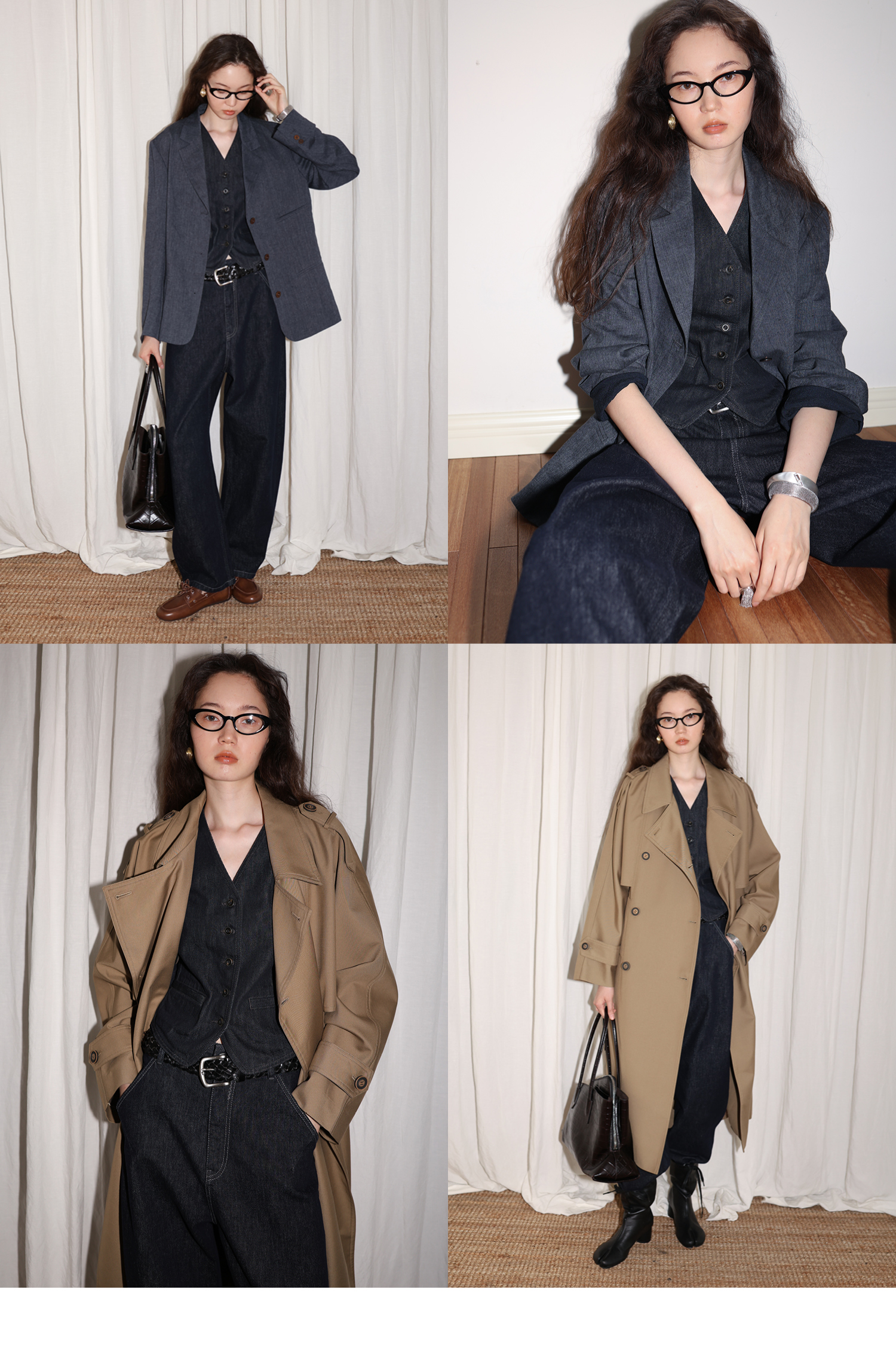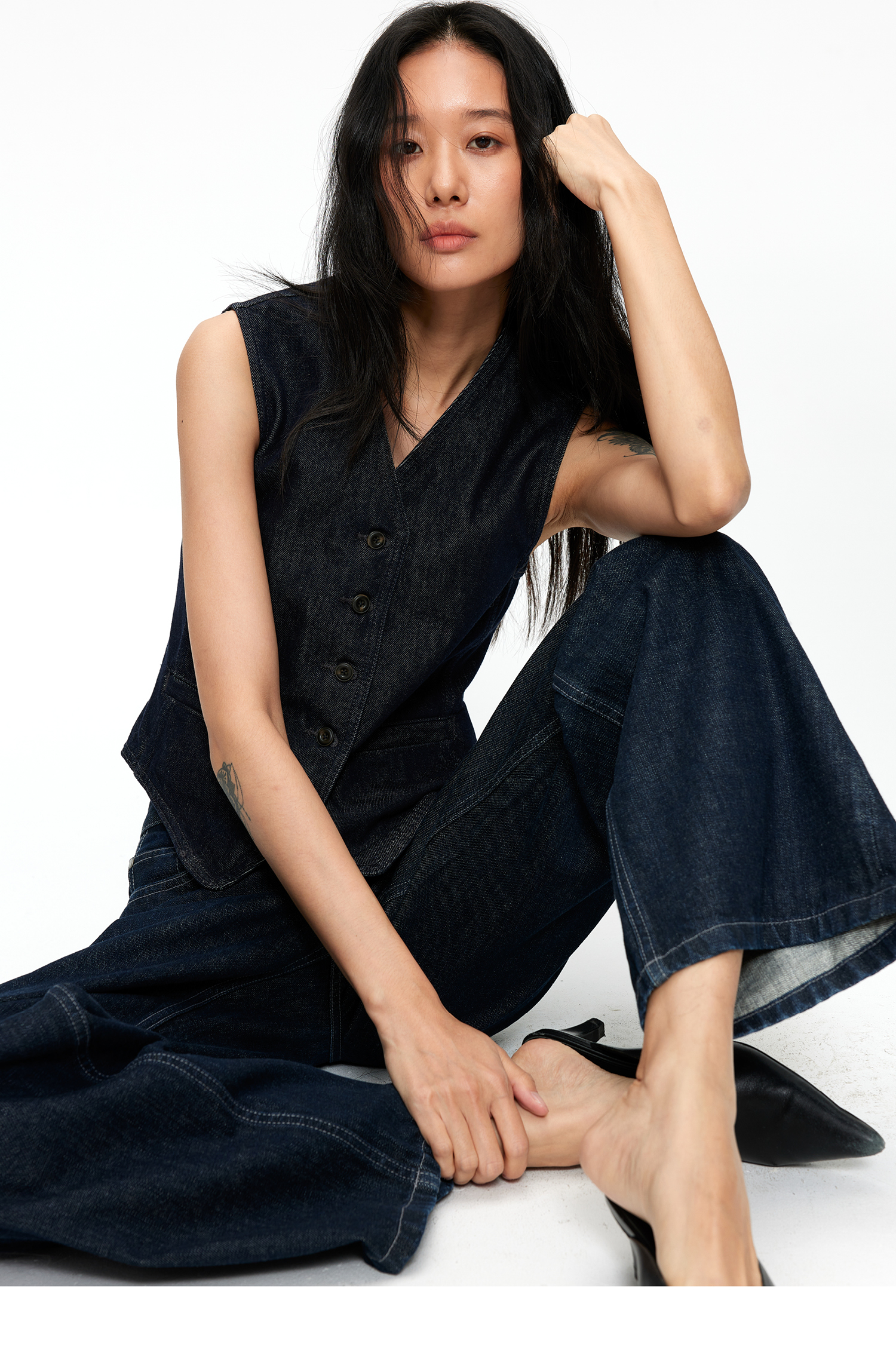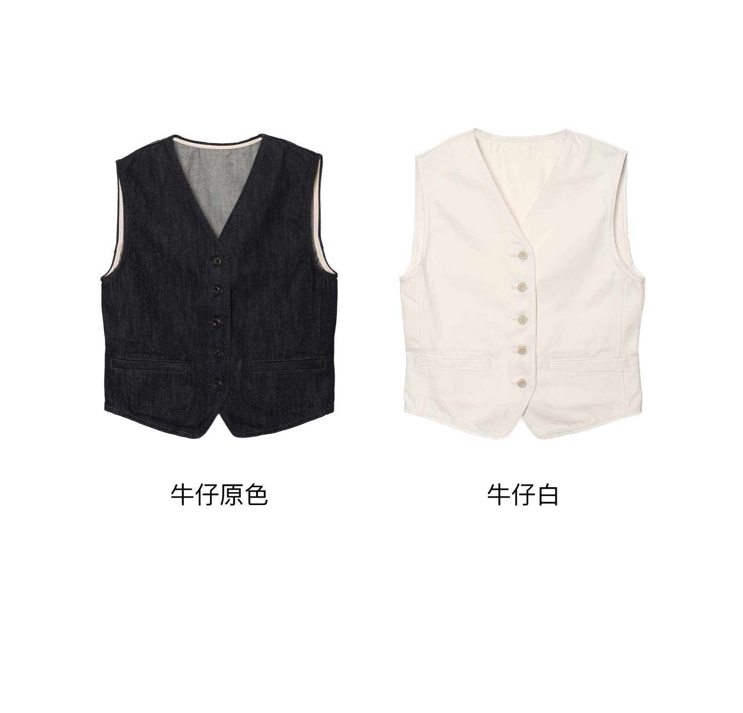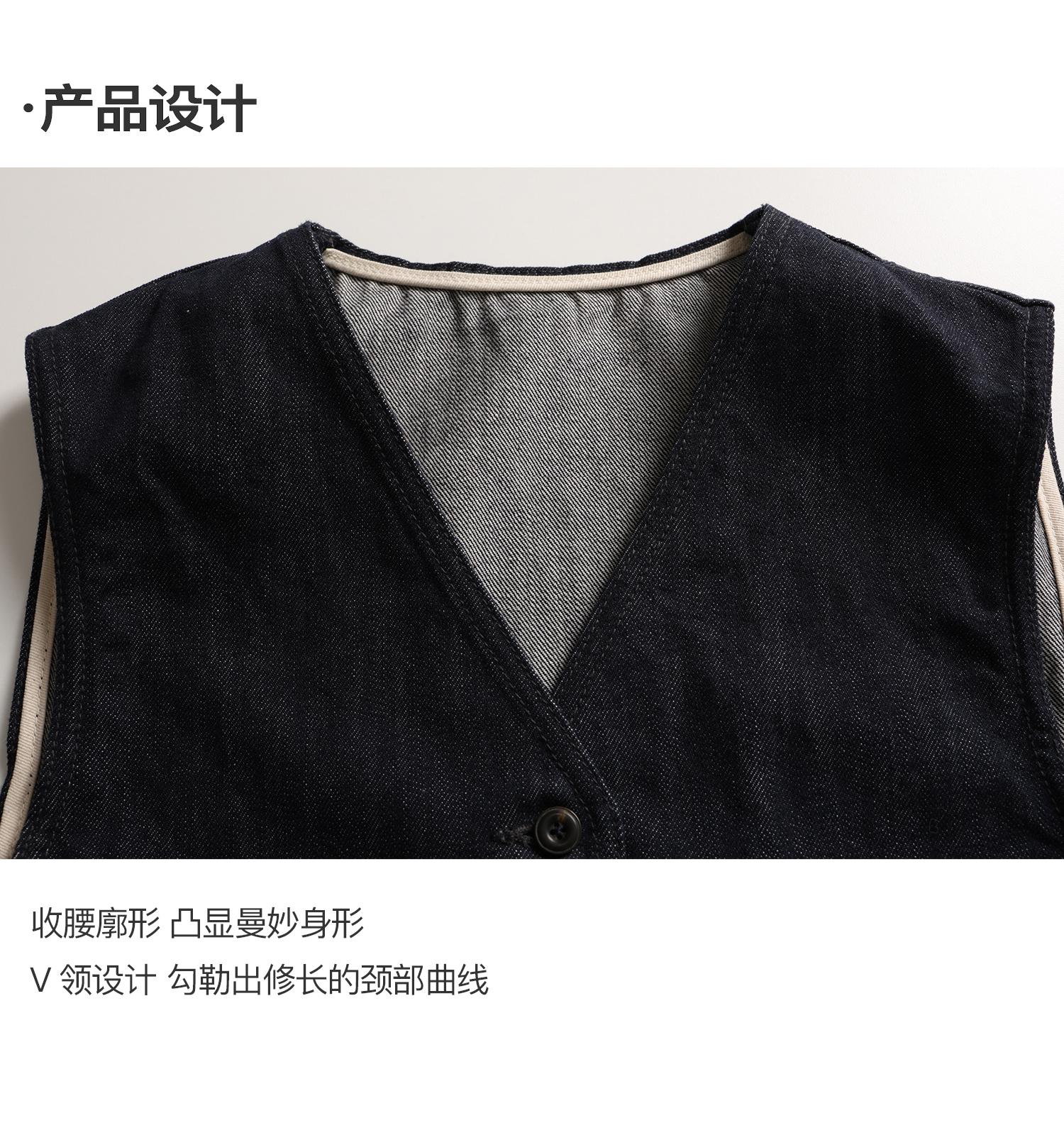 【8/6新品】素舶天丝棉原牛复古V领收腰单排扣牛仔马甲
