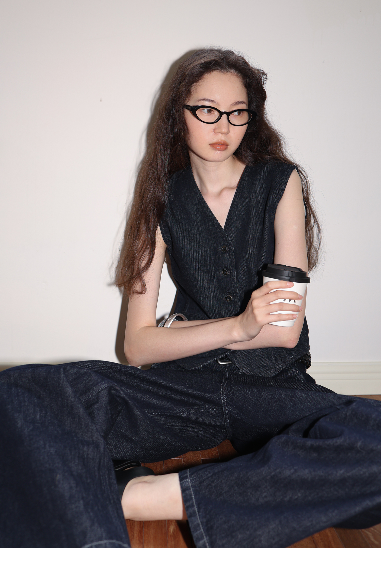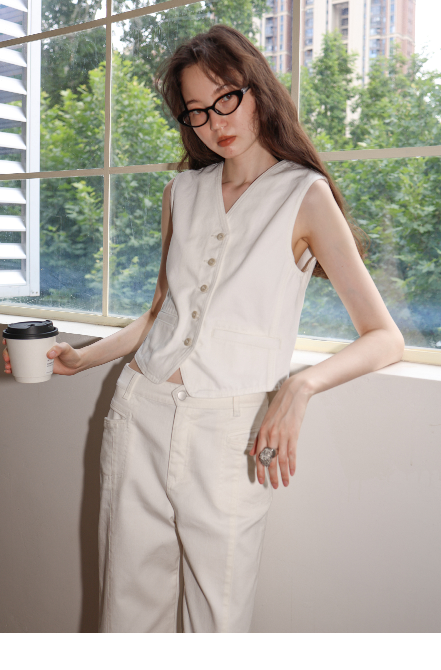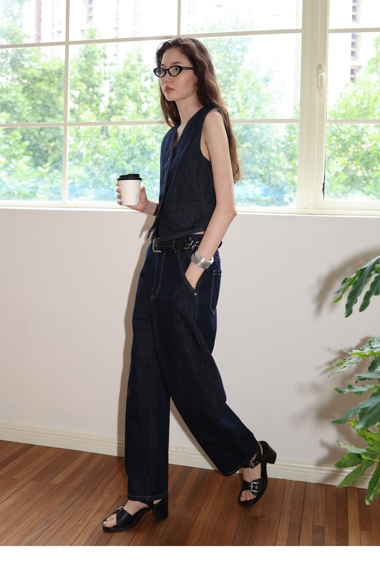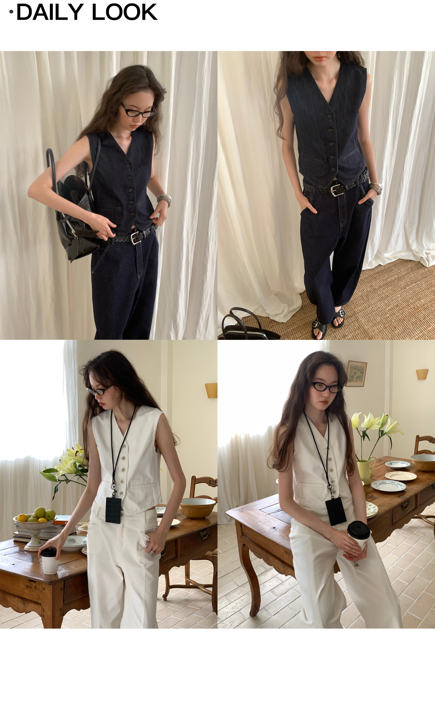 【8/6新品】素舶天丝棉原牛复古V领收腰单排扣牛仔马甲