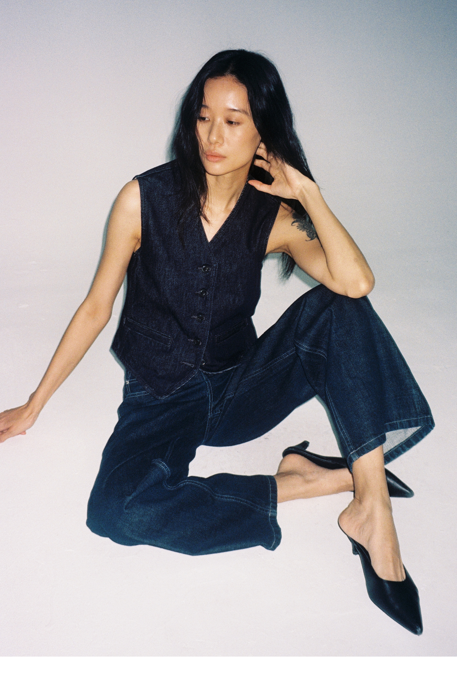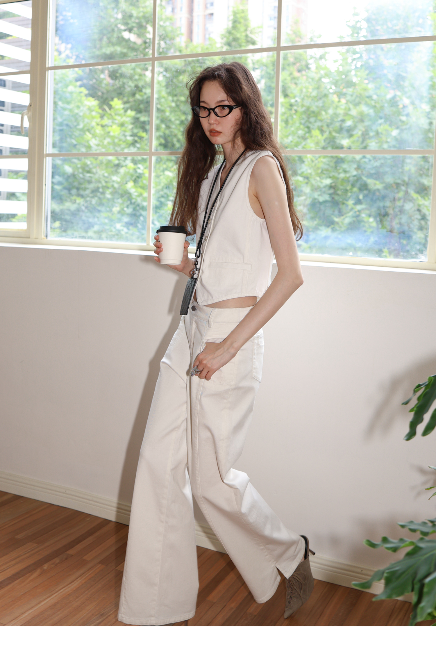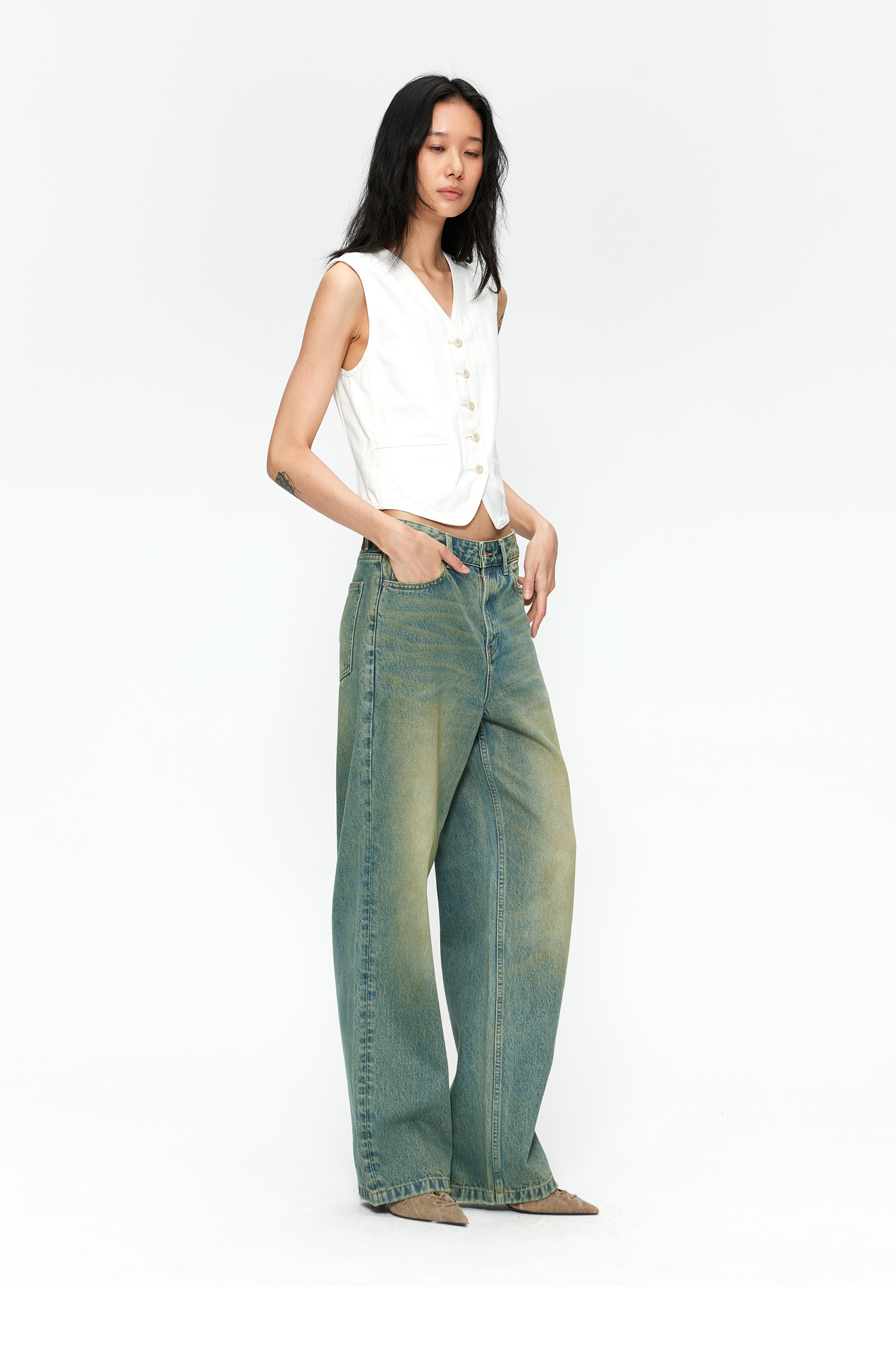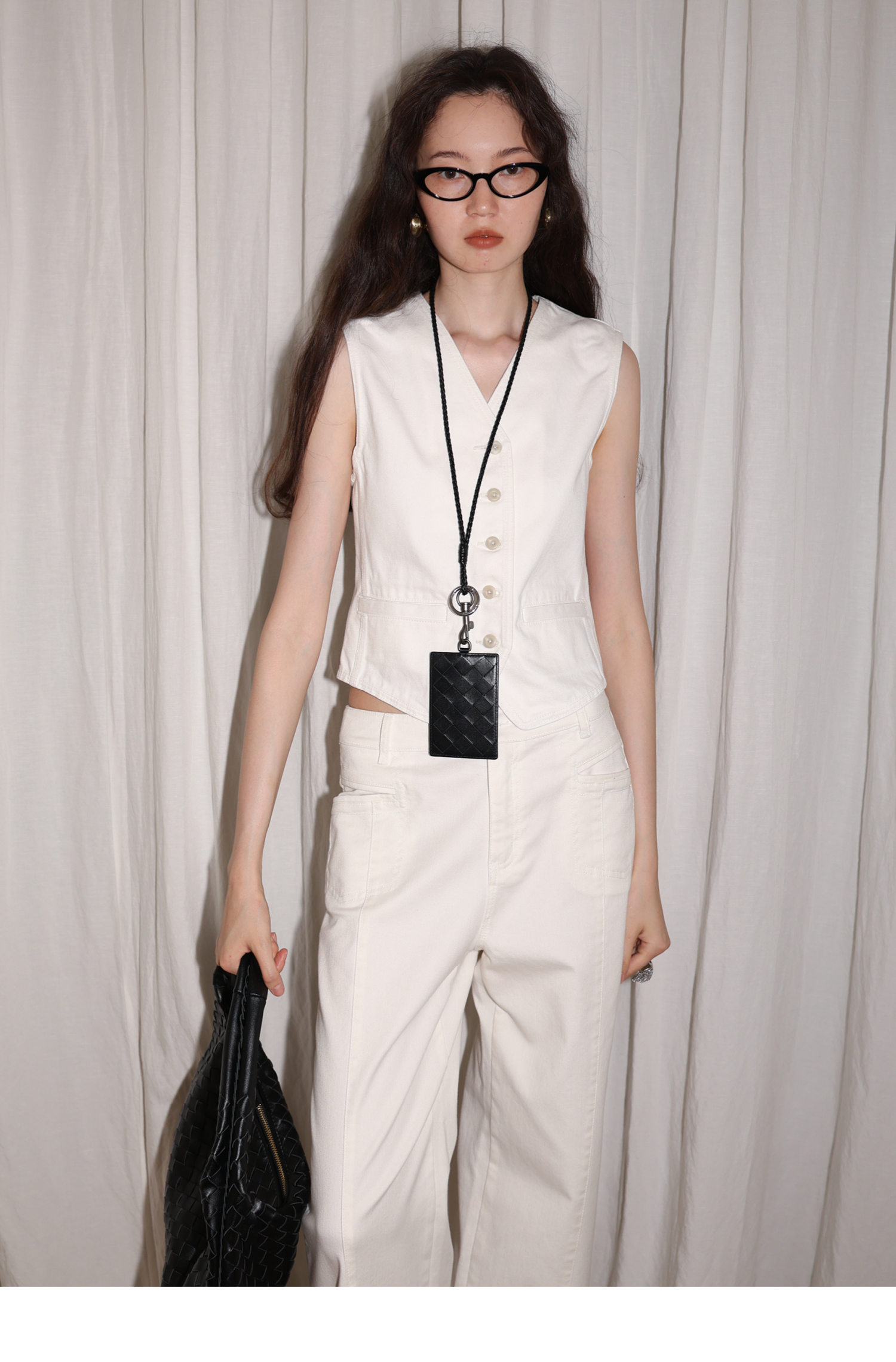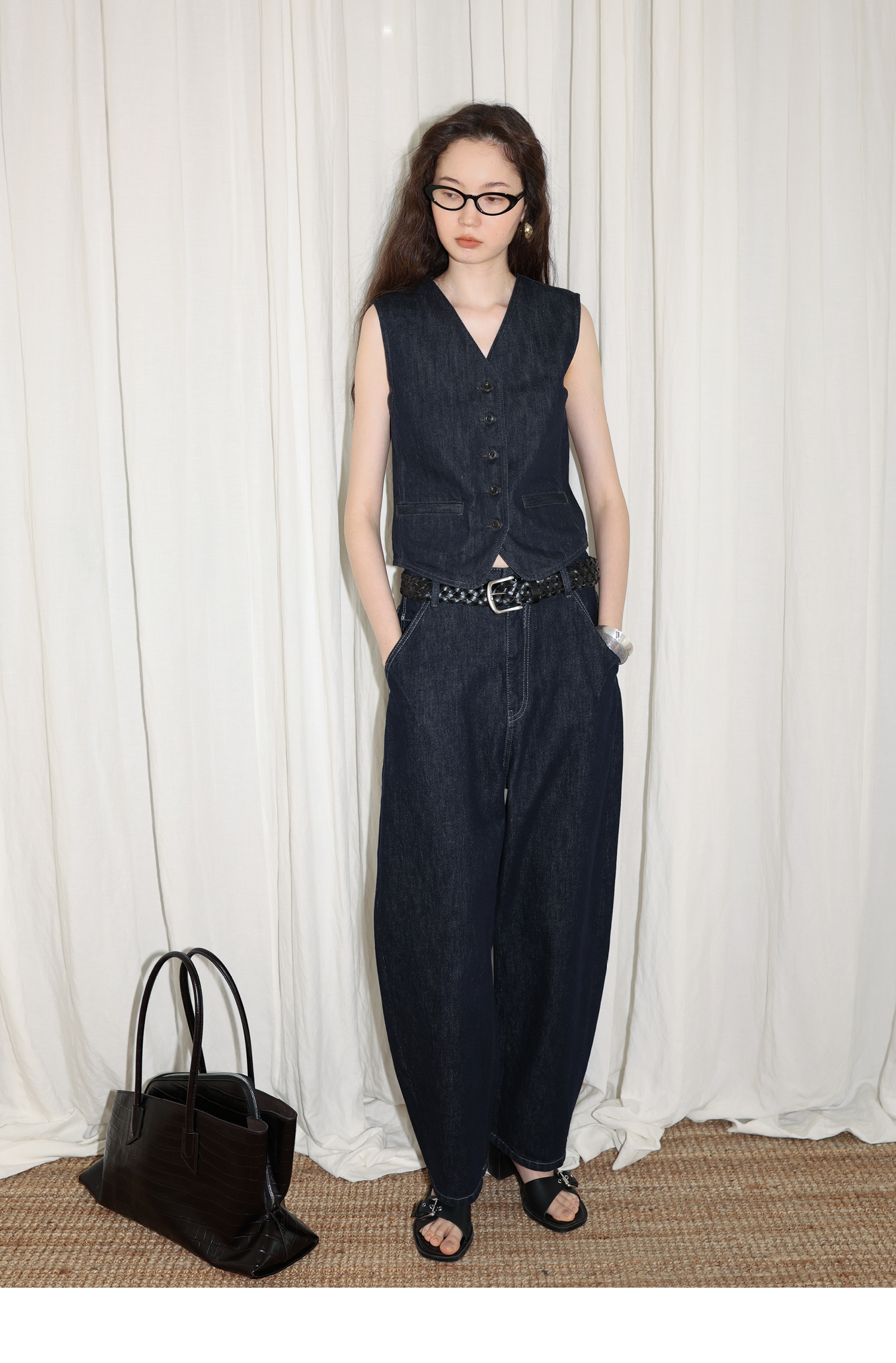 【8/6新品】素舶天丝棉原牛复古V领收腰单排扣牛仔马甲