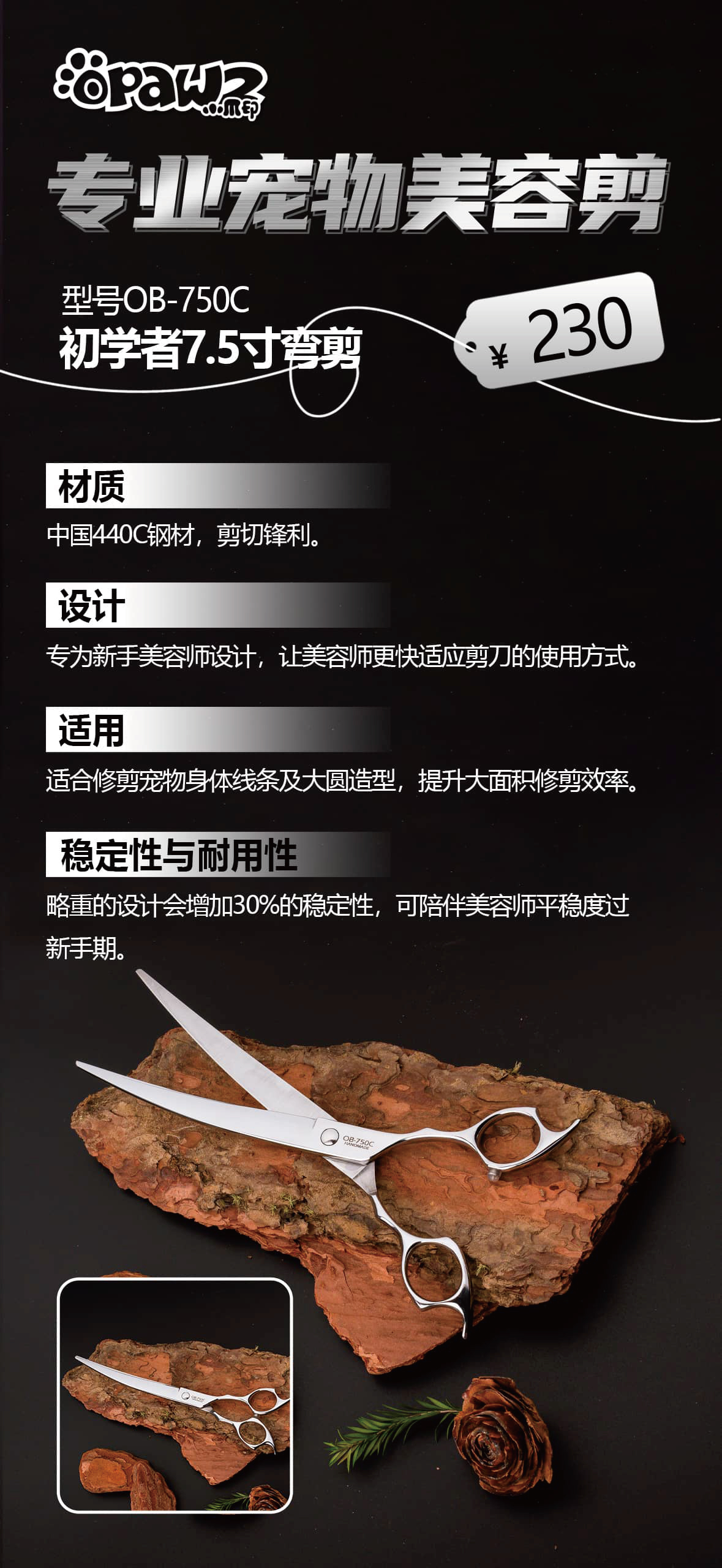 初学者弯剪-7.5寸(OB-750C) OPAWZ小爪印
