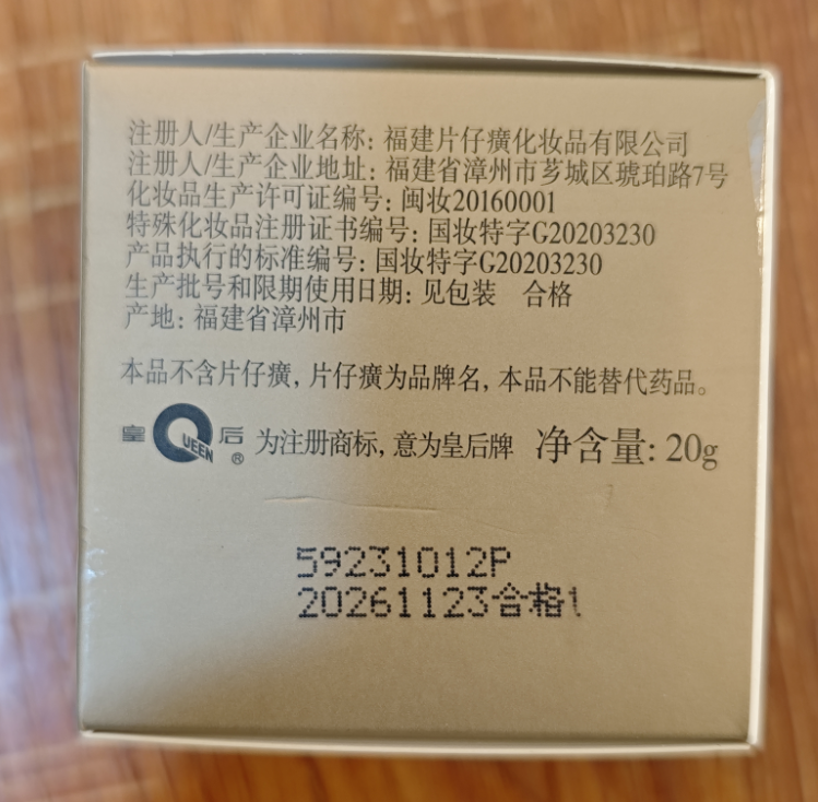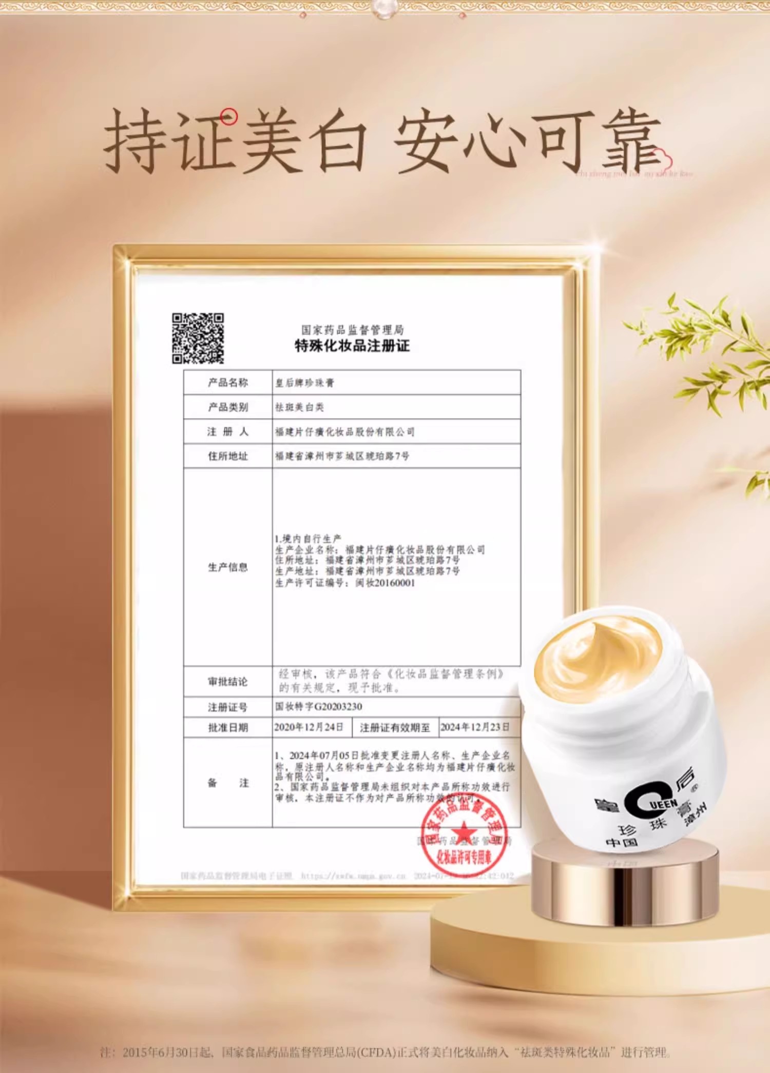 注:此款无片仔癀成分,片仔癀为品牌名,有美白祛斑特证。